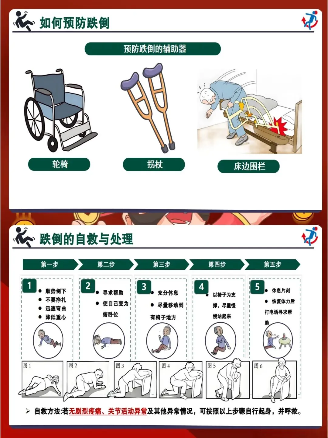 穿着建议:穿着合身衣物,裤长适宜,避免绊倒。鞋子防滑、大小合适,避免穿拖鞋、高跟鞋。袜子选用防滑材质。
