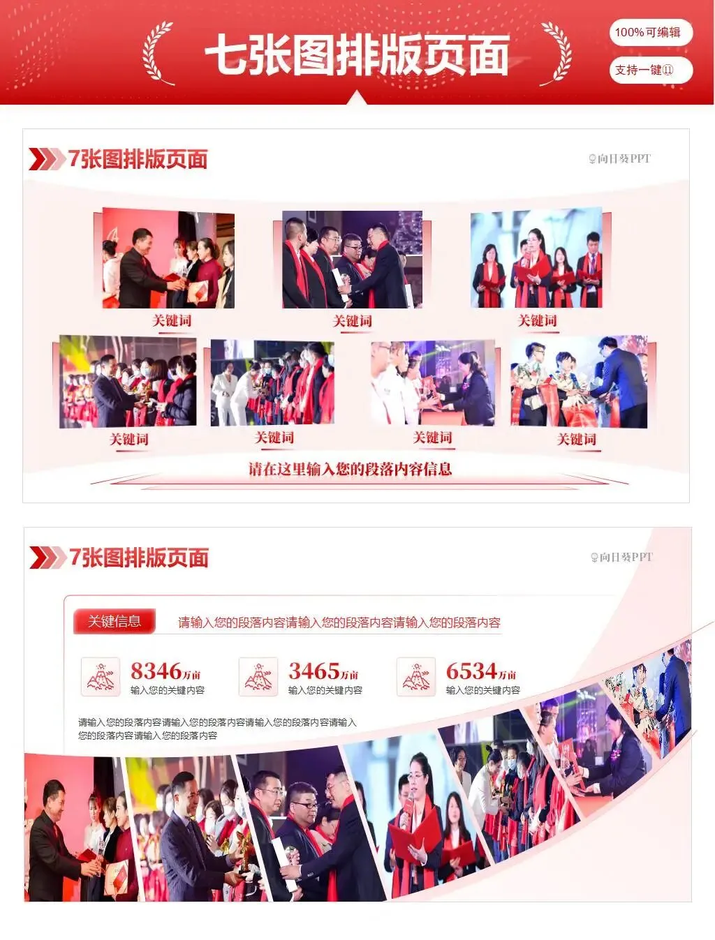 多图(9张及以上)采用瀑布流、网格矩阵、分组归类排版,遵循疏密有致、主次分明原则,统一图片尺寸与风格,搭配分类标题与精简文字,实现海量图片有序呈现,适用于图集汇总、成果集锦、活动相册、全品类展示,让多图版面整洁不杂乱。