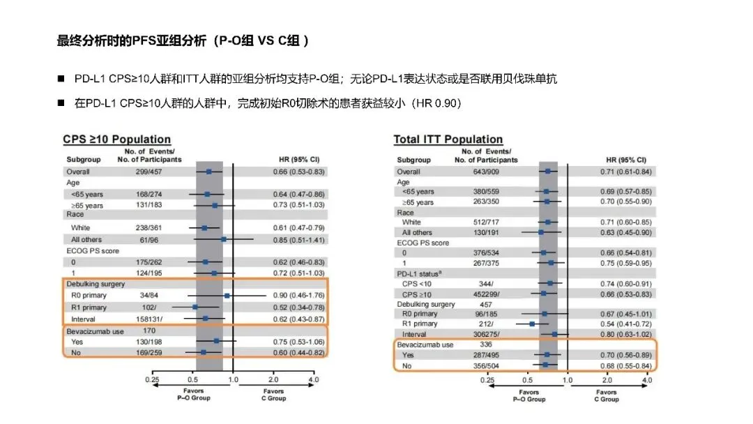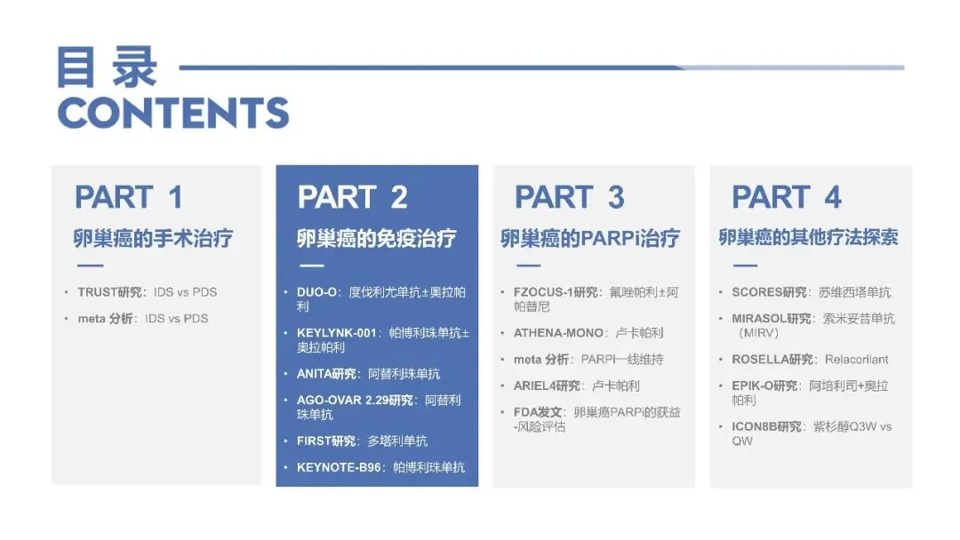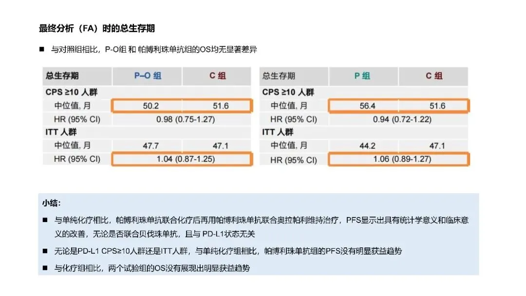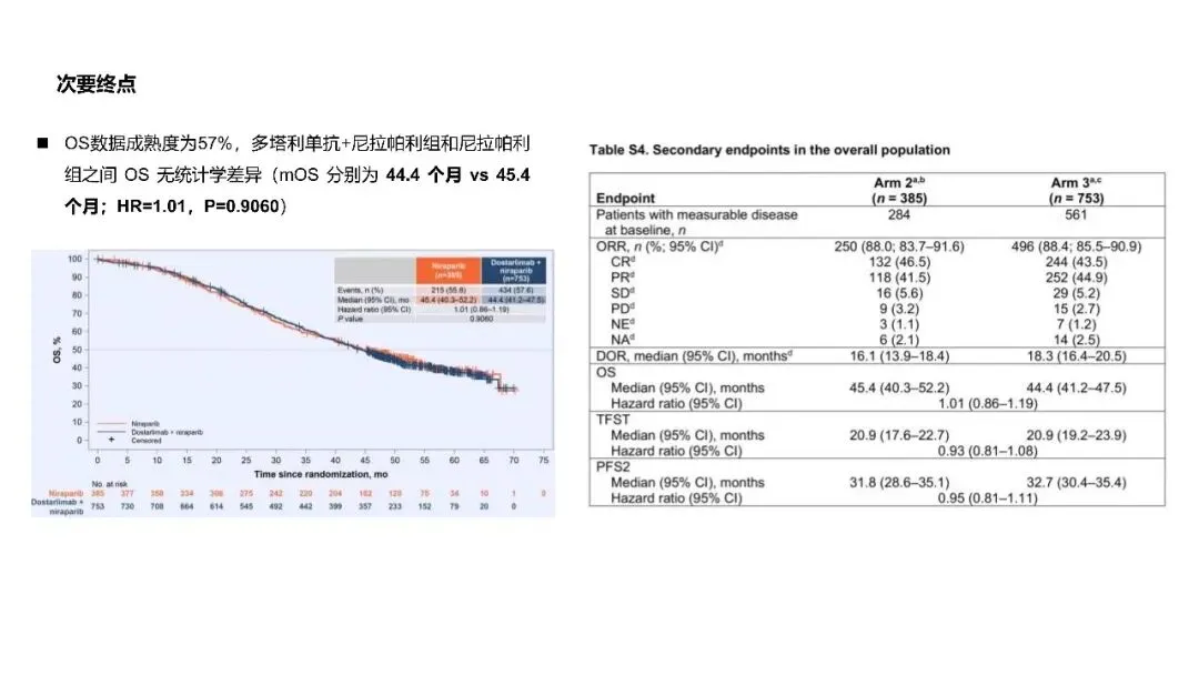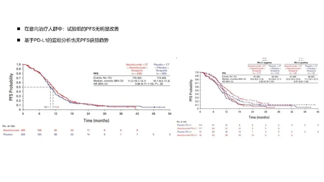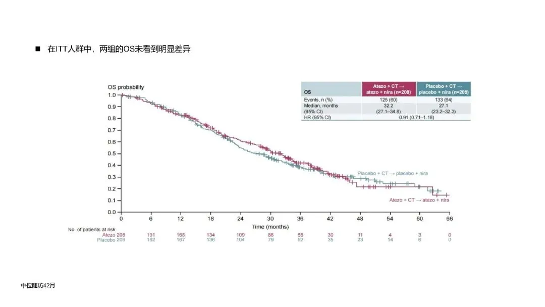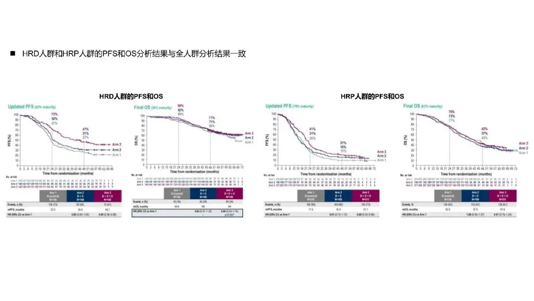 卵巢癌的免疫治疗探索之路 从最开始需要依赖于和PARP抑制剂的联用,到后面撇清了PARP抑制剂的干扰;撇清PARP抑制剂的混杂干扰之后,从最开始的PFS和OS都不获益,到后来的PFS有统计学意义的改善、但临床意义又不强、且OS没有获益,再到最后全人群PFS和OS均统计学显著性和有临床意义的改善;整个探索过程是层层递进、步步突破