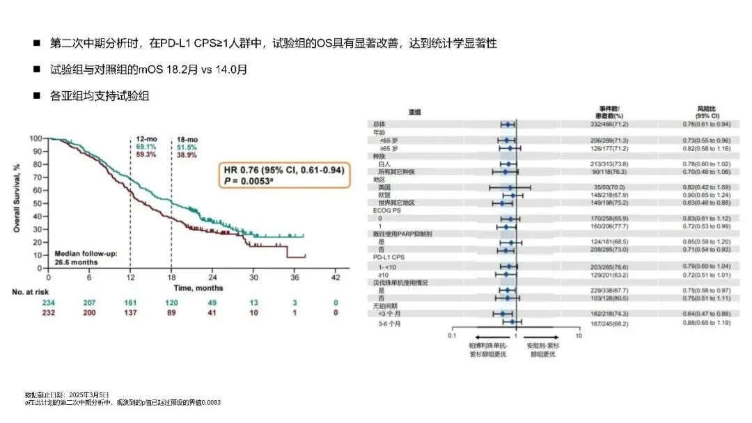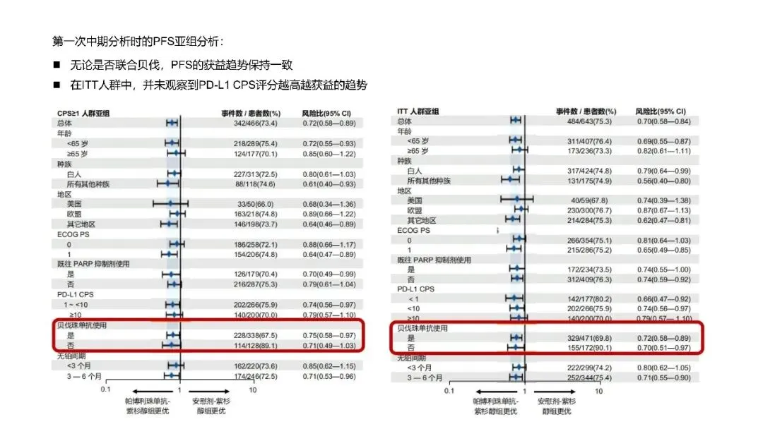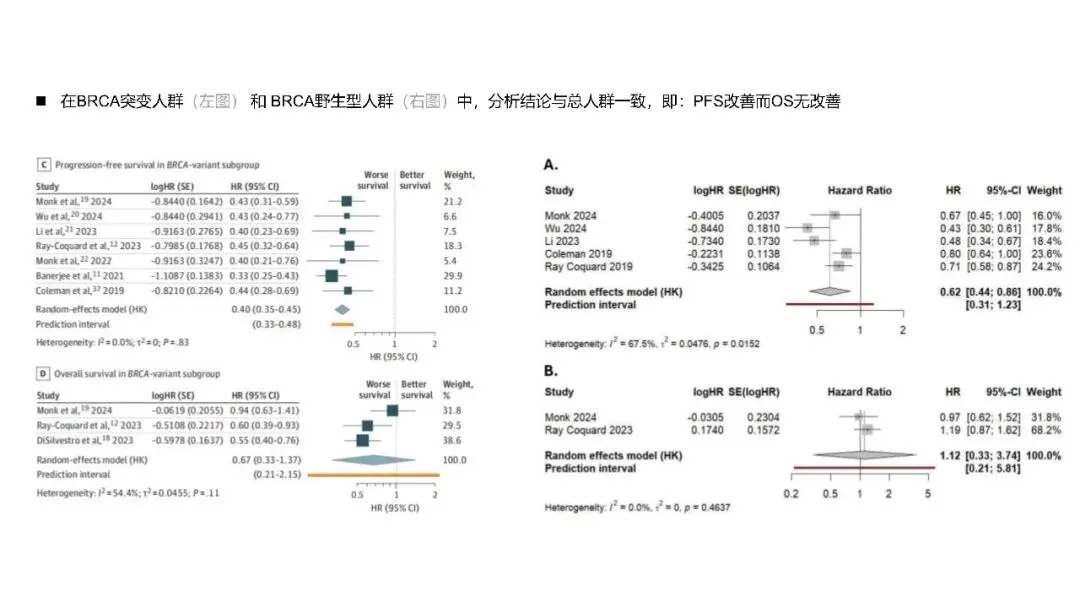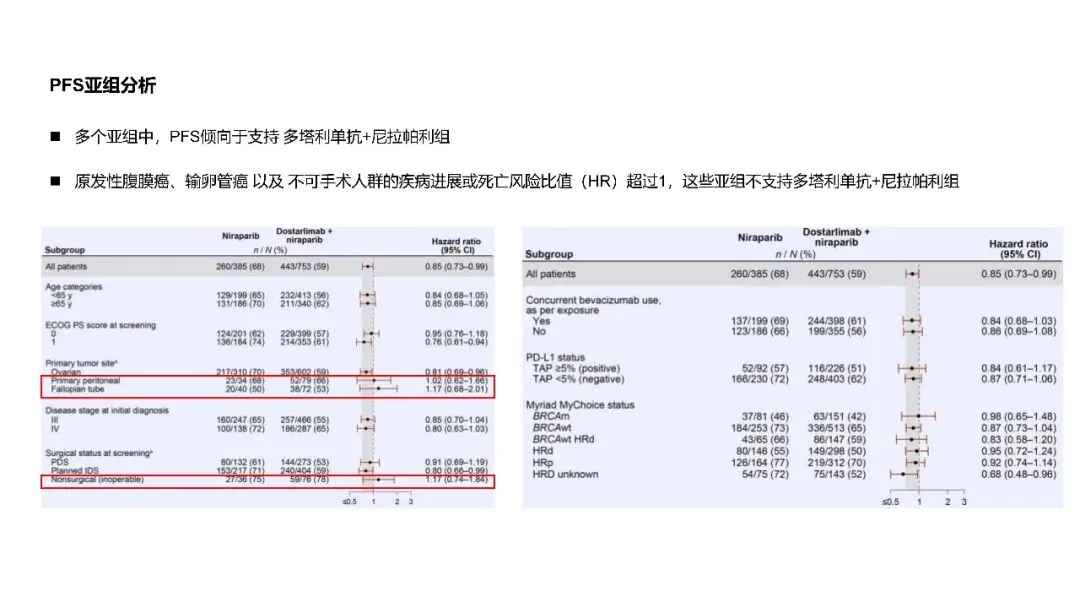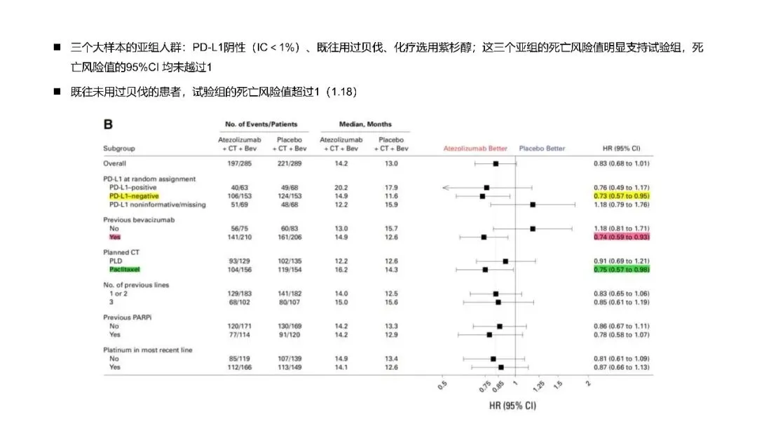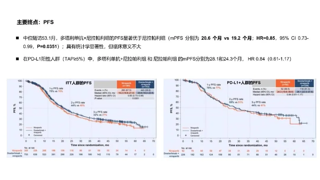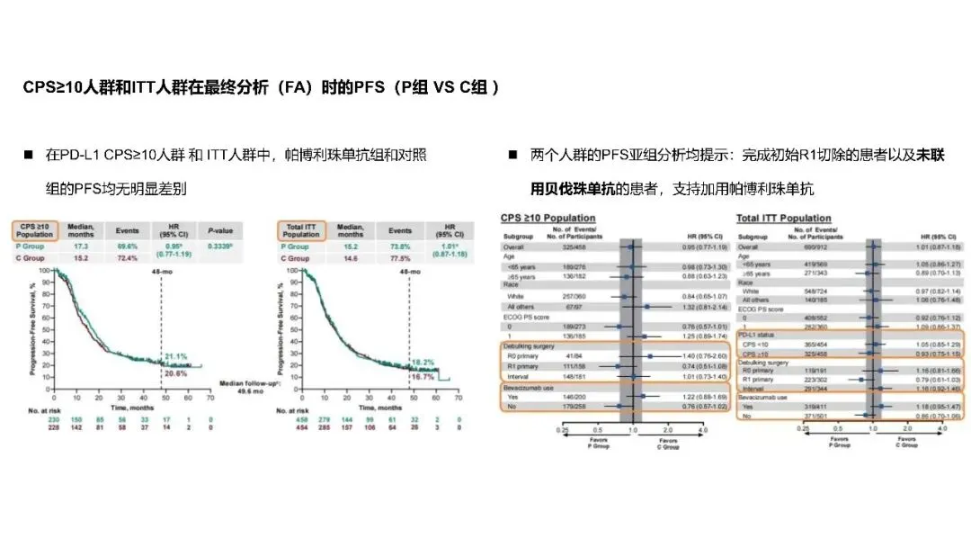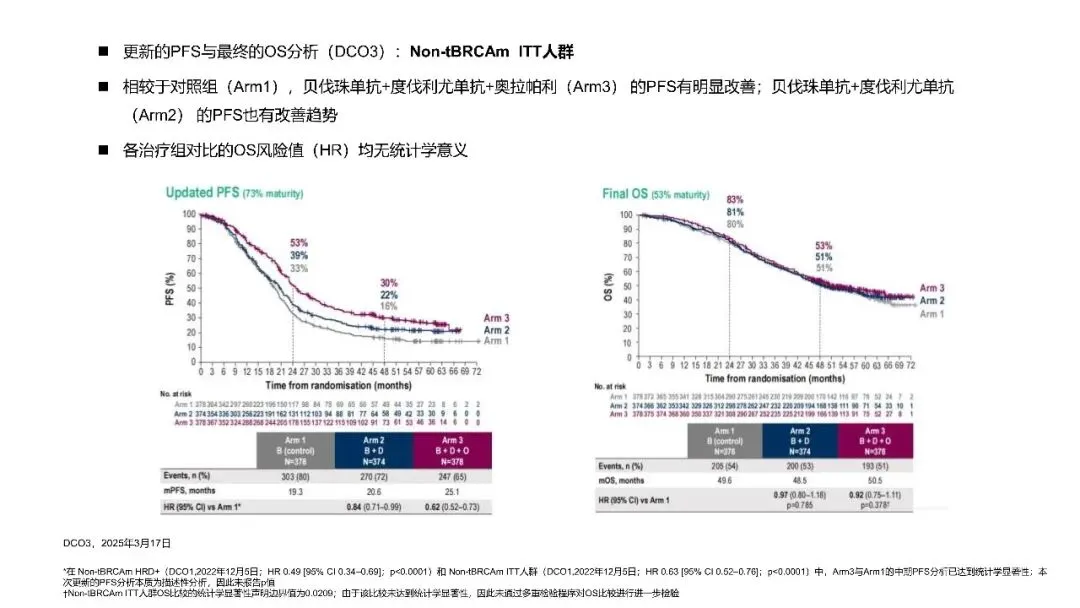 卵巢癌的免疫治疗探索之路 从最开始需要依赖于和PARP抑制剂的联用,到后面撇清了PARP抑制剂的干扰;撇清PARP抑制剂的混杂干扰之后,从最开始的PFS和OS都不获益,到后来的PFS有统计学意义的改善、但临床意义又不强、且OS没有获益,再到最后全人群PFS和OS均统计学显著性和有临床意义的改善;整个探索过程是层层递进、步步突破