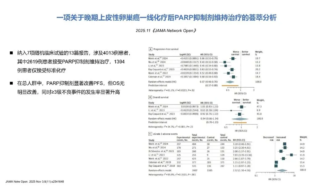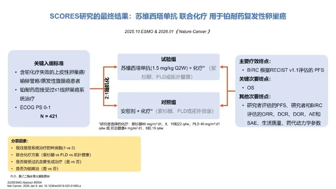 抗血管生成的生物大分子药物、靶向叶酸受体的ADC药物、选择性的糖皮质激素受体拮抗剂都能为铂耐药复发性卵巢癌的患者带来生存获益,但阿培利司+奥拉帕利不能为患者带来获益
