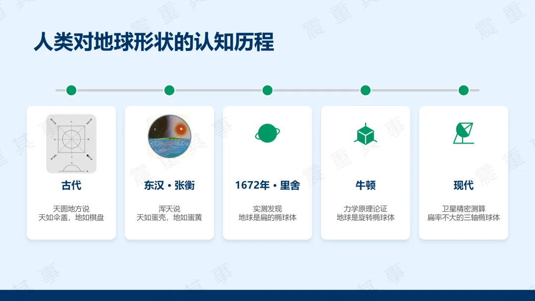 首先我们进入第一部分,地球的形状和大小。提到地球的形状,大家现在都知道地球是个球体,但在科技不发达的古代,人类对地球形状的认知经历了一个漫长又有趣的过程,接下来我们就一起回顾这段认知历程。
