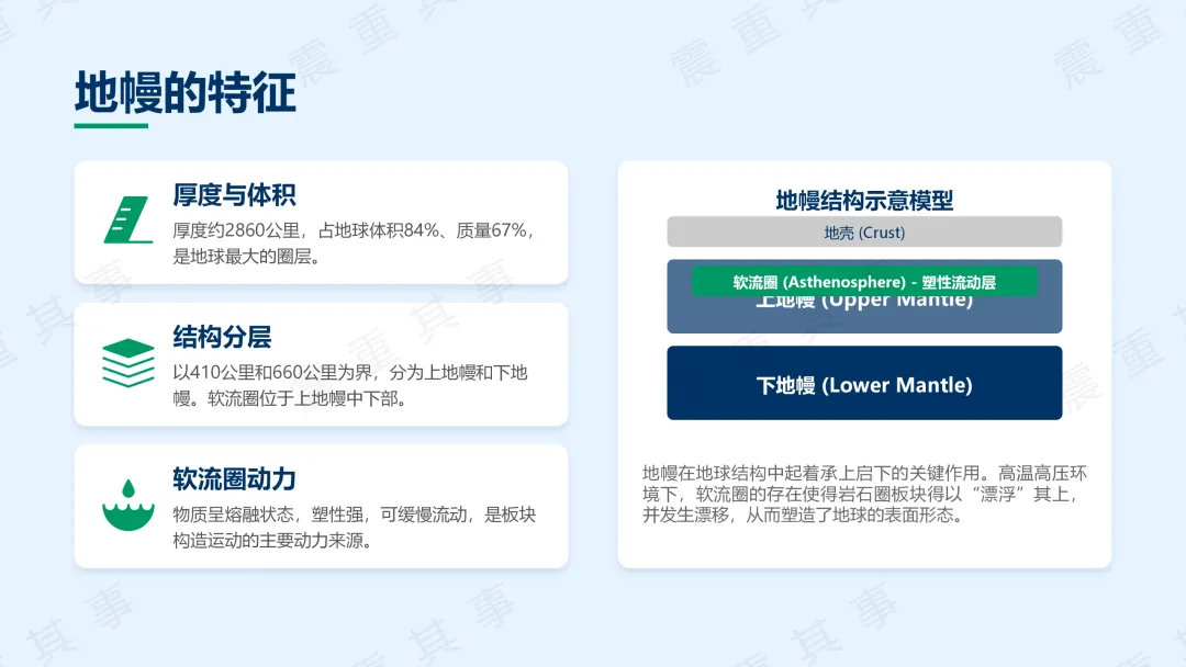 这里给大家做个总结:岩石圈就像一块“大木板”,漂浮在软流圈这个“液态传送带”之上,软流圈的缓慢流动带动了岩石圈板块的运动,两者相互配合,共同构成了地球的动态表层系统,地球表面的各种地质活动,都和它们的相互作用有关。