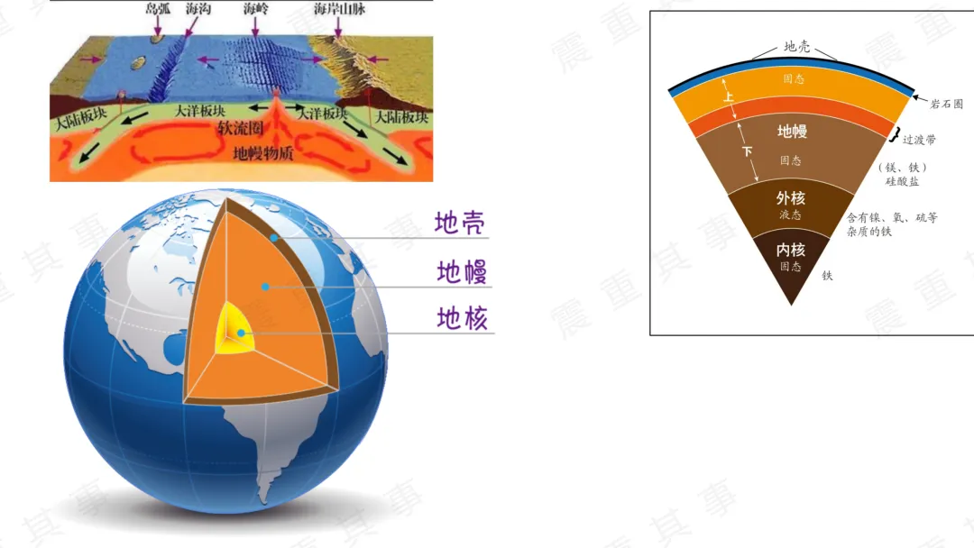 看完了地壳,接下来是地幔,它位于地壳和地核之间,是地球内部非常重要的圈层,接下来我们从厚度体积、结构分层、软流圈动力这几个方面,认识地幔的特征。