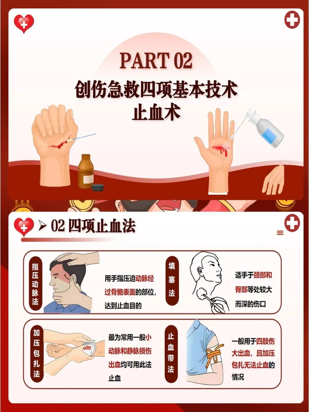 创伤是临床急诊的常见病种,多发于交通事故、高处坠落、意外伤害等场景。现场急救质量直接关系到伤员生命安全与预后,黄金救援时间往往以分钟计算。止血、包扎、固定、搬运是创伤现场急救的四项基本技术,掌握其规范操作流程是每一位医护人员的必备技能。以下从技术原理、操作要点、注意事项三个维度,系统梳理这四项核心技术的临床应用。一、止血技术:控制出血,挽救生命