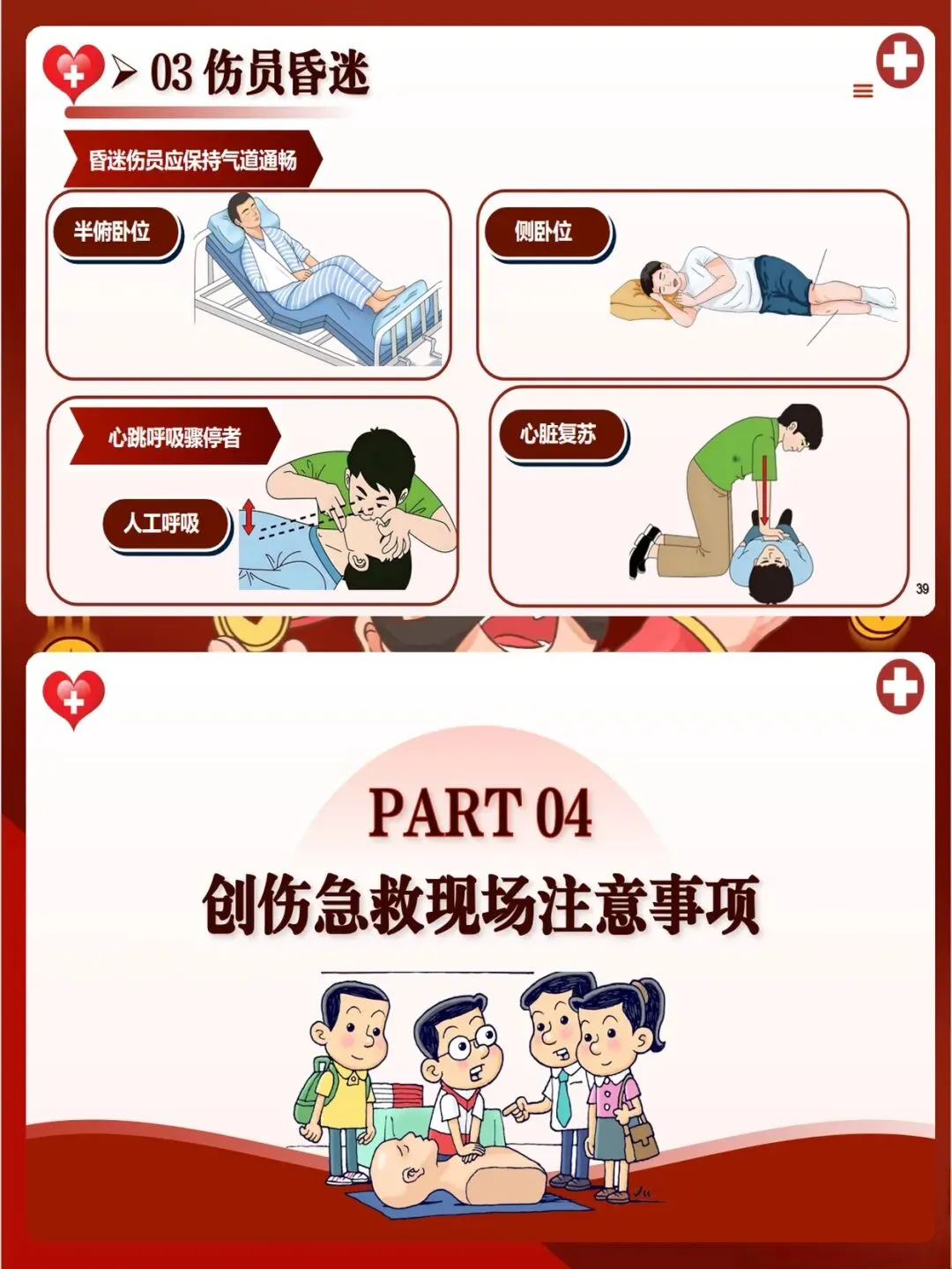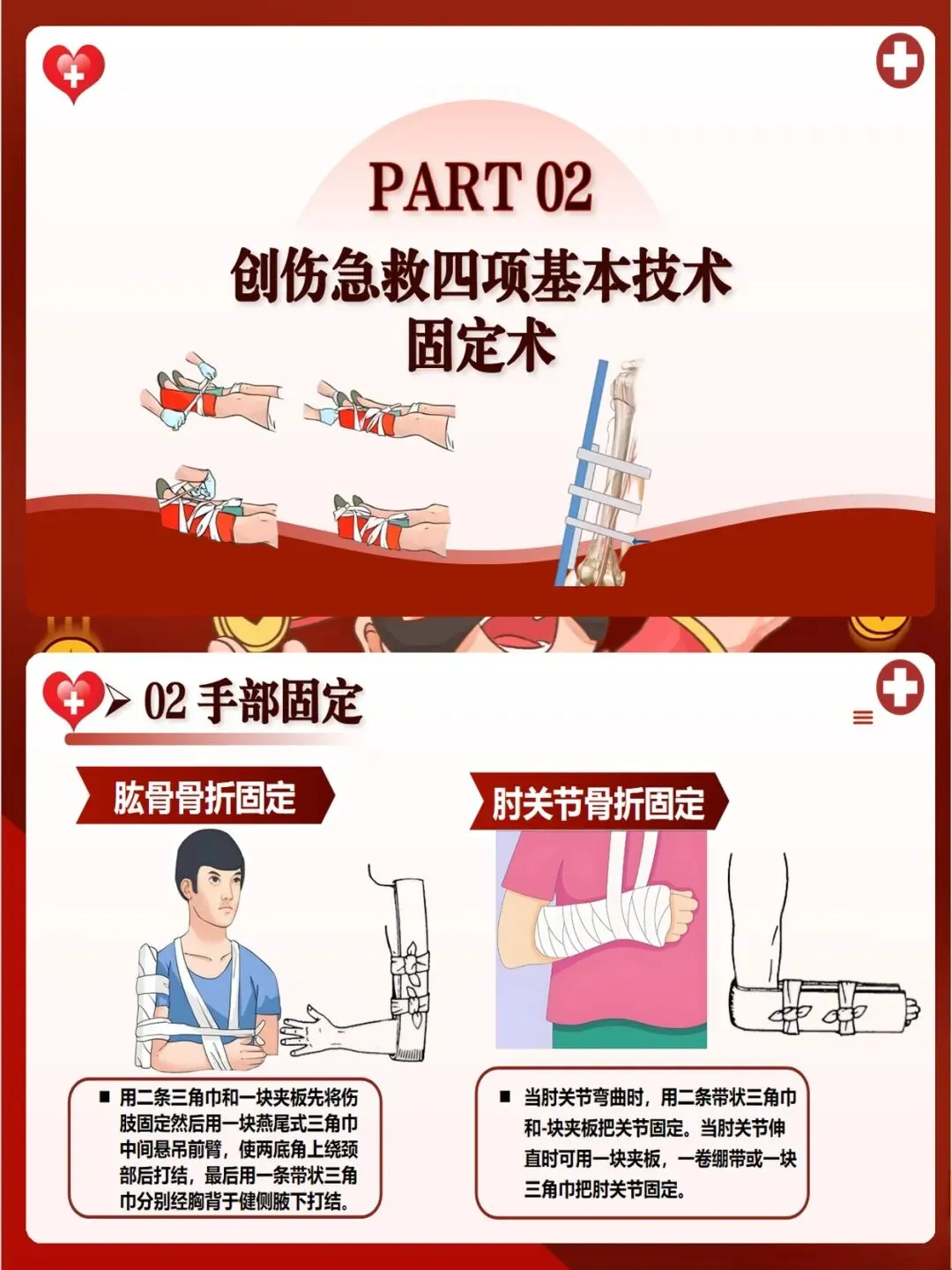 脊柱固定:怀疑脊柱损伤(尤其是颈椎)时,必须立即固定,避免搬运时造成脊髓损伤。使用颈托固定颈椎,若无颈托,可用衣物、毛巾卷成颈垫固定。胸腰椎损伤用脊柱板固定,保持脊柱中立位,整体滚动搬运。