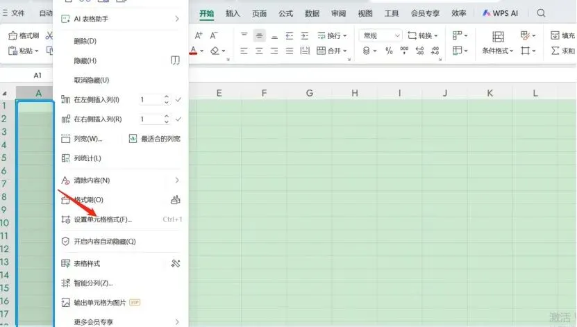 首先,选中需要设置的区域,如A列,单击右键选择“设置单元格格式”,或者直接按快捷键Ctrl+1。