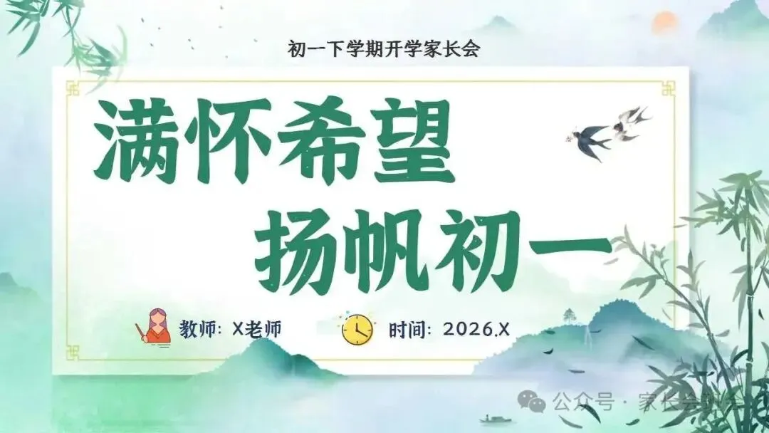 初一(七年级)下开学家长会ppt:满怀希望,杨帆初一.(含发言稿)
