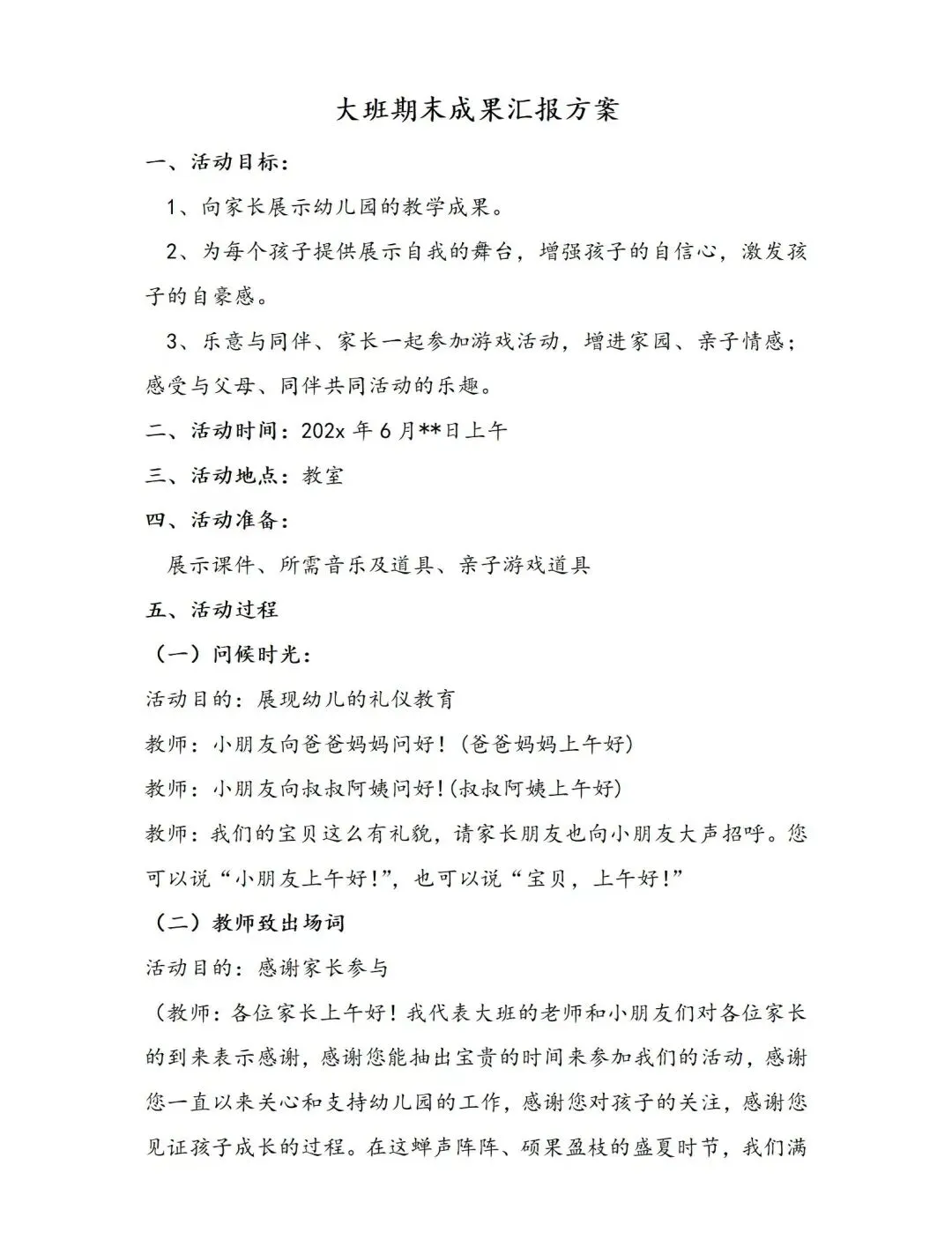 >大班下学期期末汇报PPT+发言稿