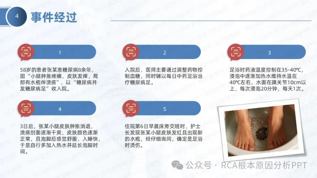 在临床工作中,任何一起不良事件都如同警钟,提醒着我们医疗护理工作的严谨性与复杂性。患者安全始终是医疗护理的核心目标,而此次发生的患者足浴烫伤事件,无疑为我们敲响了一记沉重的警钟。这起事件不仅关乎患者的切身利益,更对我们的护理工作提出了深刻反思。以下将从事件经过、原因分析、整改措施以及总结思考四个方面,对此次患者足浴烫伤不良事件进行详细汇报,旨在全面剖析问题,寻求有效改进策略,切实保障患者安全。