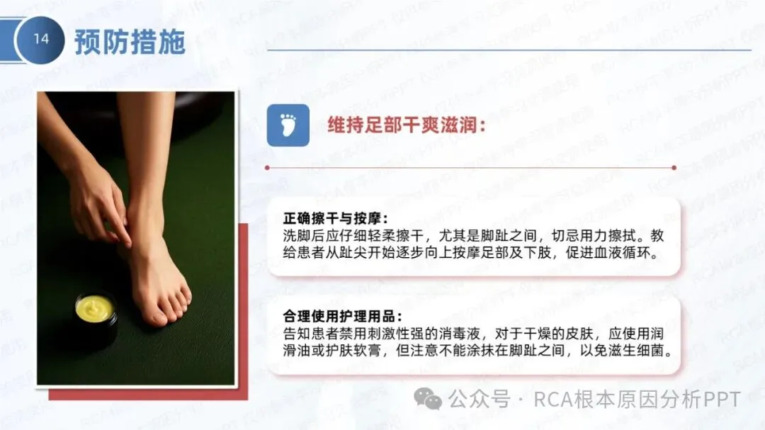 可以建立患者足部健康档案,定期跟踪患者的足部状况,根据实际情况对预防措施进行调整和优化,确保预防工作的有效性和针对性。