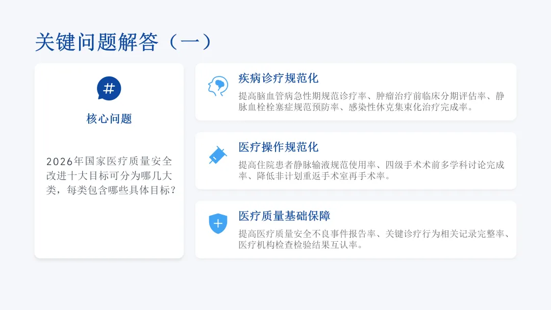 转自公为方便大家记忆和理解,根据《新政学习!国家卫生健康委办公厅关于印发2026年国家医疗质量安全改进目标的通知》,特制作PPT课件,请大家转发学习,如有不妥请批评指正,需要完整电子版扫描下方二维码。
