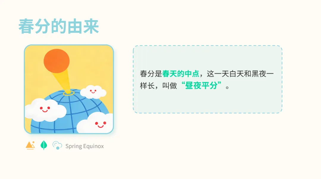 知道春分是二十四节气之一,了解春分 “昼夜平分” 的特点。
