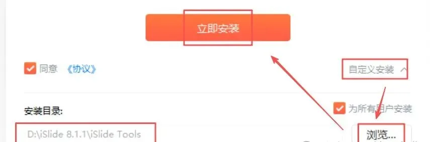 2.自定义安装路径进入安装界面后,选择 “自定义安装”,点击【浏览】设置合适的安装路径,确认后选择【立即安装】。