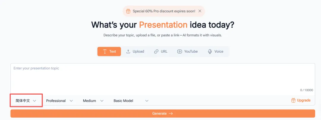 AI PPT Maker——输入描述、上传文档、文章链接自动做ppt的AI网站