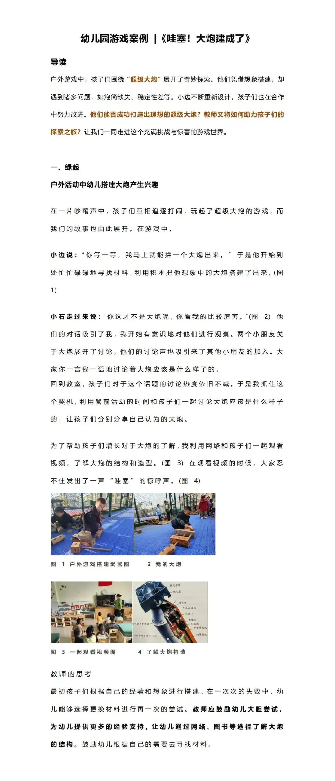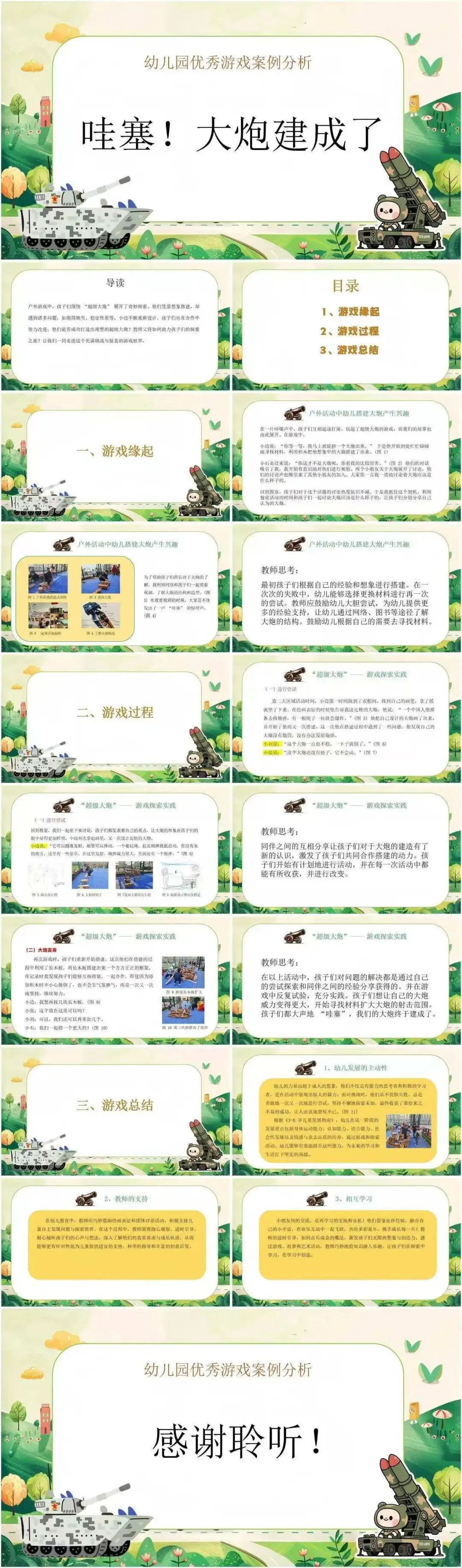 幼儿园自主游戏案例《哇塞!大炮建成了》PPT+发言稿