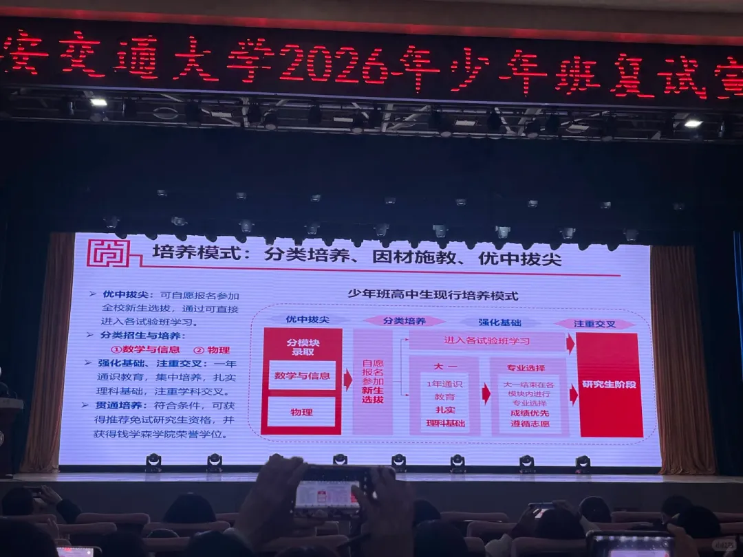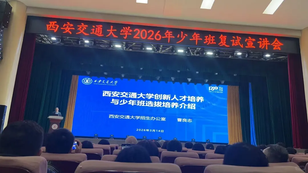 3月14日,西安交通大学2026年少年班复试宣讲会线下举行!招生办公室主任详细介绍了学校创新人才培养和少年班选拔方案。竞赛牛娃圈整理了宣讲会核心内容,供考生和家长参考~