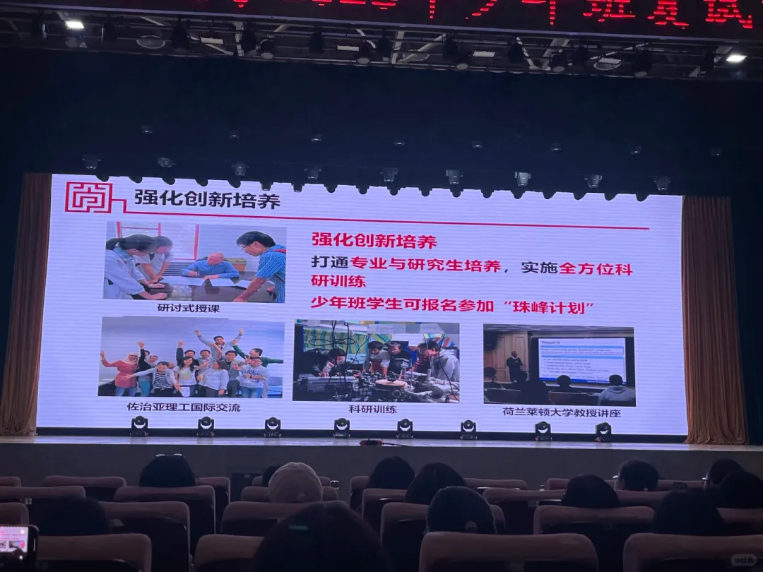少年班学生可报名参加“珠峰计划”,获得全方位科研训练。课程采用研讨式授课,打通本科与研究生培养。国际交流机会丰富,如佐治亚理工国际交流项目、荷兰莱顿大学教授讲座等。