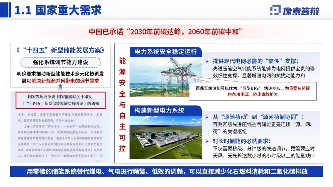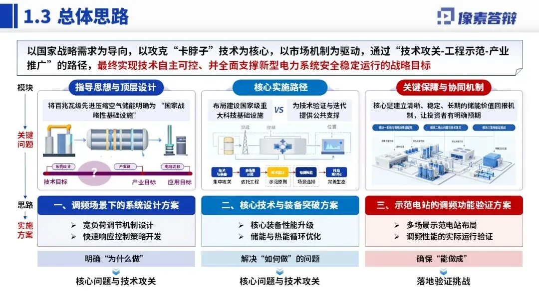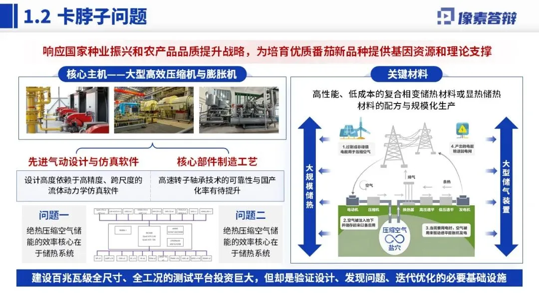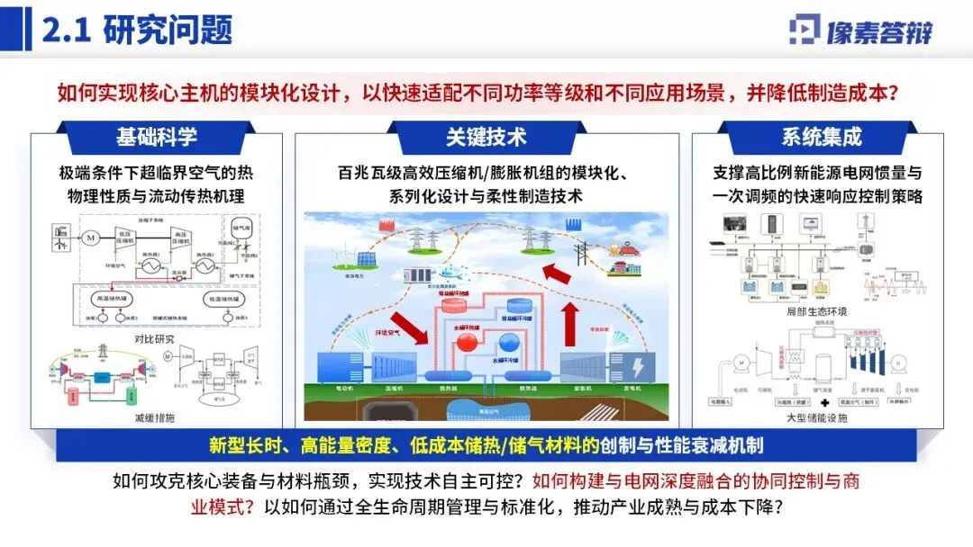1. 研究背景与目标:项目紧扣 “双碳” 目标与新型电力系统建设需求,针对电网调频对长时储能的迫切要求,解决当前先进压缩空气储能领域气动设计软件、核心装备、储热材料等 “卡脖子” 问题,以技术攻关-工程示范-产业推广为路径,目标攻克核心装备与材料瓶颈实现技术自主可控,打造电网 “智能调节器官”,推动其成为新型电力系统标准配置。