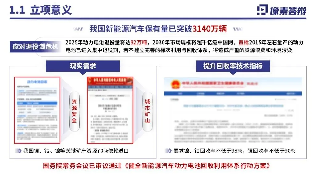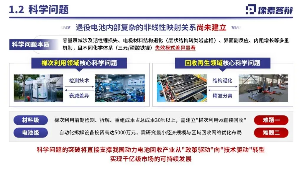 本项目为国家自然科学基金联合基金青年项目,聚焦新能源汽车动力电池的梯次利用与回收技术,依托高校与中科院科研机构协同优势,针对动力电池全生命周期管理中的资源循环与高效利用难题展开基础与应用基础研究,旨在突破梯次利用适配性评估、绿色回收及高值化再生等核心技术瓶颈,推动新能源汽车产业绿色闭环发展,助力 “双碳” 目标实现。