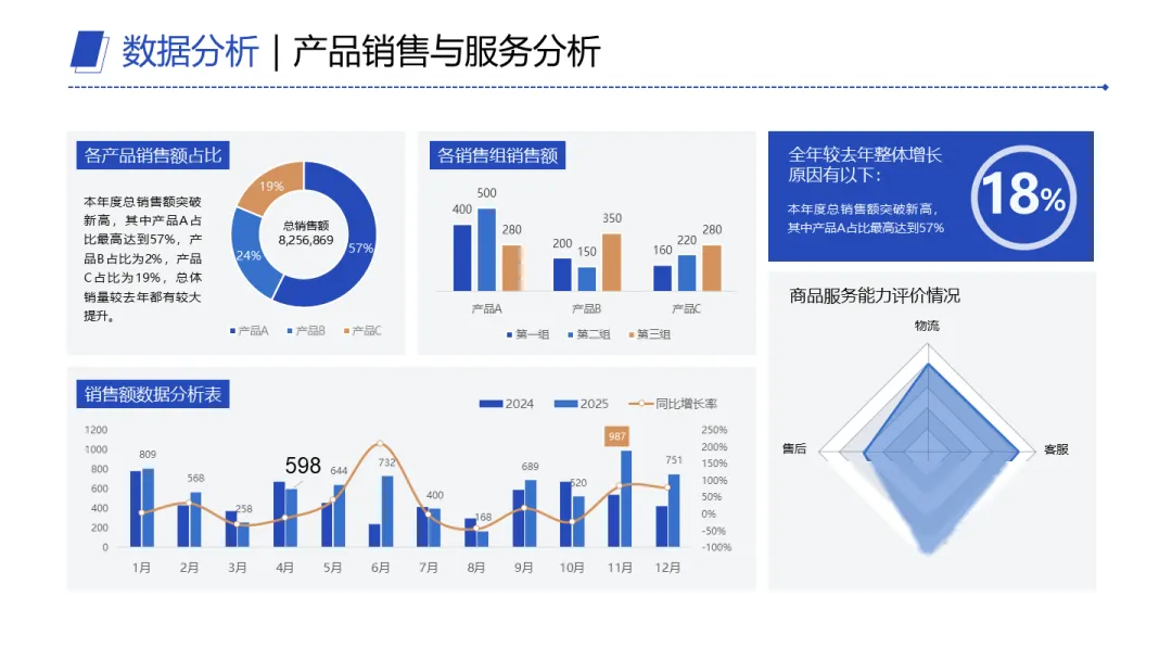 我们梳理了不少数据汇报PPT后,发现真正好用的方案,底层逻辑都差不多——不是堆材料,而是让人一眼抓住重点,顺着你的思路往下走。