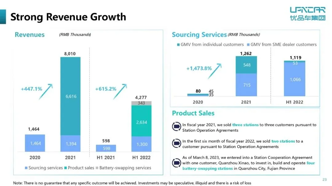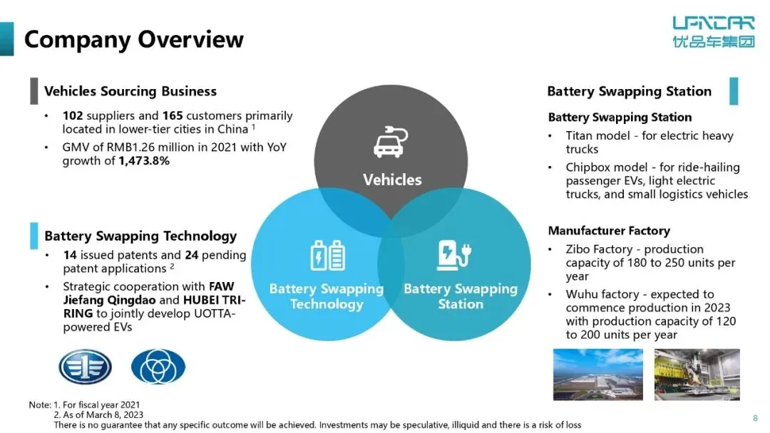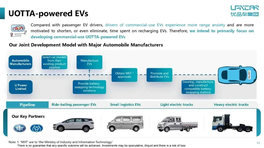 优品车是由一家传统的汽车经纪服务商转型为一家电动汽车电池换电技术解决方案提供商,核心业务是UOTTA换电技术,并围绕该技术构建“车-站-数据”的生态系统,覆盖商用运输车辆、多用途船舶、无人机、无人物流车等领域。2025上半年,优品车营收1773万美元,净亏损2200万美元。