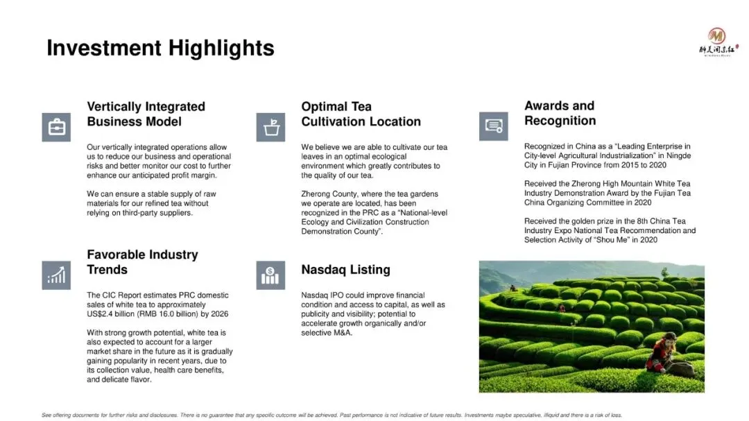 闽东红茶业是一家一体化茶产品供应商,围绕茶叶的种植、加工和销售展开。该公司以白茶为核心、覆盖从茶园到茶杯全产业链的茶叶企业,依托福建柘荣的生态优势,向中国大陆市场销售初制和精制白茶及红茶。2025上半年,闽东红茶业营收500万美元,净利润11万美元。