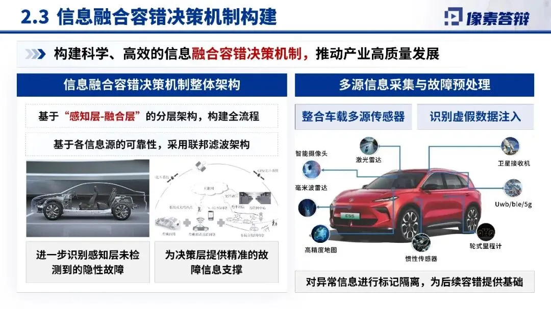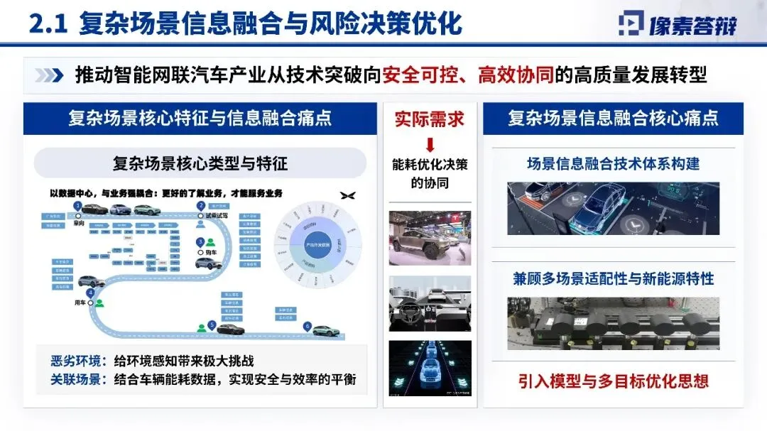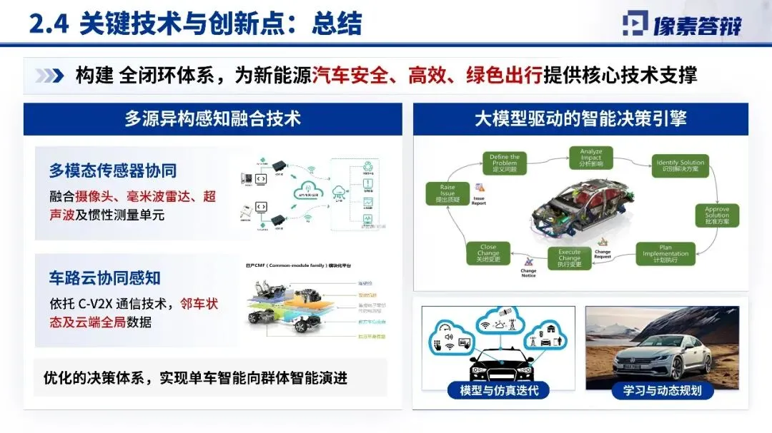 2.关键技术与创新点项目在复杂场景信息融合与风险决策优化、多模态传感器与网联数据能效决策系统等方面取得突破,构建了信息融合容错决策机制,能够对异常信息进行标记隔离,提升系统的可靠性与安全性。这些技术创新为智能新能源汽车的规模化应用奠定了坚实基础。
