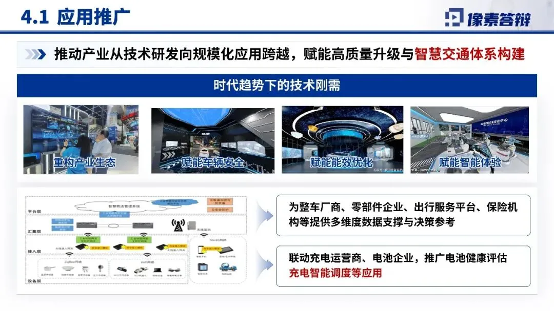 4.应用推广与成效项目成果已广泛应用于能效优化领域,为整车厂商、零部件企业、出行服务平台及保险机构等提供多维度数据支撑与决策参考。通过与充电运营商、电池企业联动,推广电池健康评估、智能充电调度等应用,有效推动信息融合决策技术的规模化落地,助力我国巩固新能源汽车先发优势