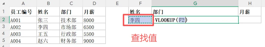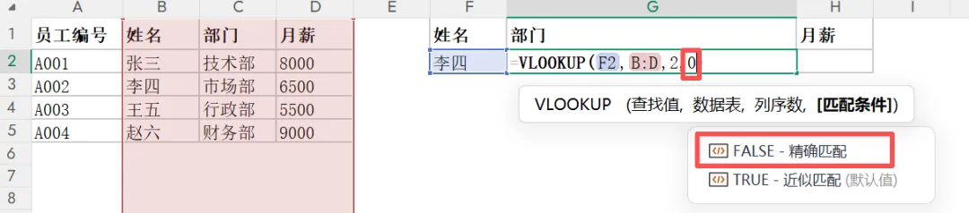 =VLOOKUP(查找值, 查找区域, 返回第几列, 匹配方式)