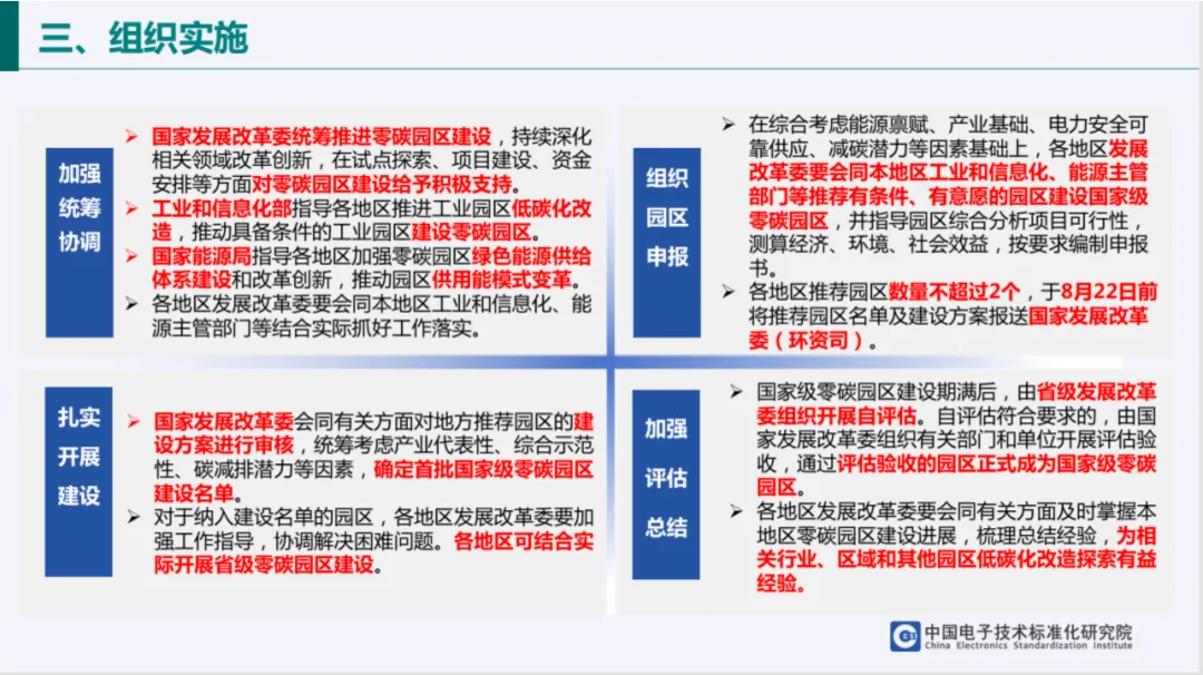 组织实施上,各地区需推荐不超过2个有条件的园区,于8月22日前报送建设方案,国家发展改革委会同相关部门审核确定首批建设名单,期满后通过评估验收的园区将正式成为国家级零碳园区。