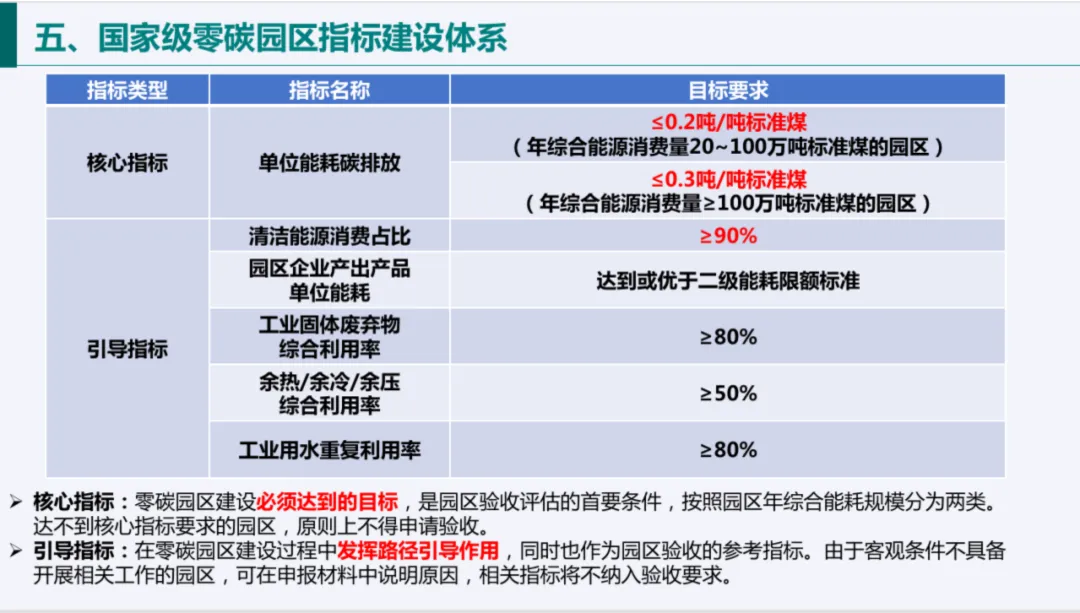 零碳园区建设有明确的基本条件与指标体系。建设主体为省级及以上开发区,建设范围可为园区整体或“园中园”,需具备能耗和碳排放统计核算基础,且3年内未发生重大安全环境事故。