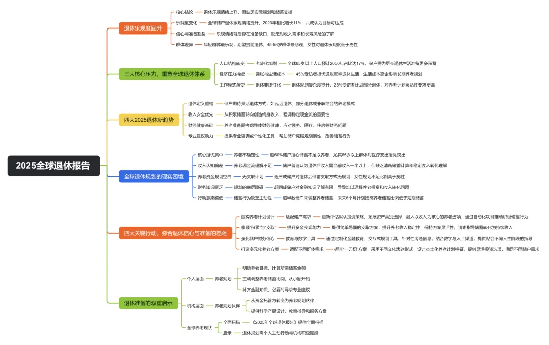 这份《2025年全球退休报告》不仅是对全球退休现状的一次全面扫描,更给个人和机构都带来了深刻的启示。