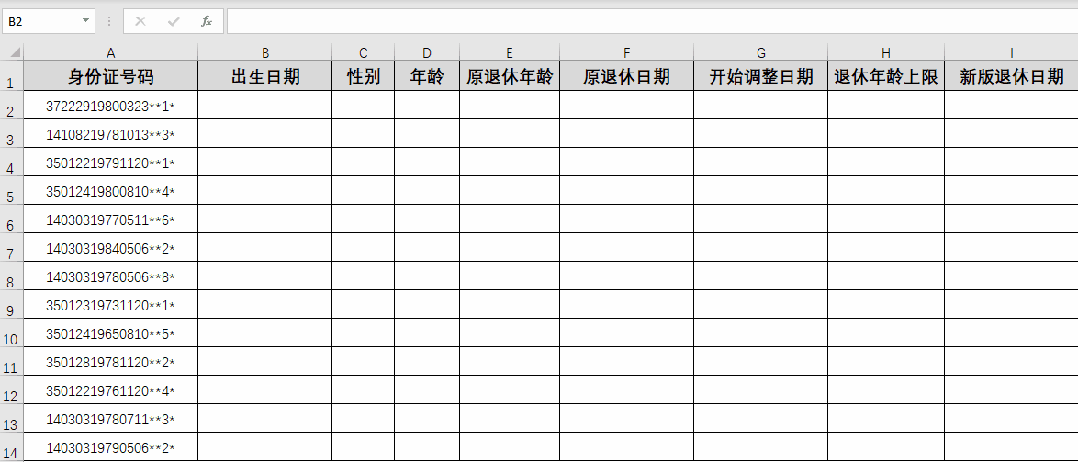 涉及到的函数 简单讲解如下,不需要的童鞋可以直接跳过,底部有表格下载链接:例如上面公式中 =eomonth(F2,35) 表示的就是:原退休日期(F2),在35个月之后的最后一天。公式外+1,就变成了下个月第一天了。在上面公式中,就是比较2个计算得出的月份,返回更小的月份DATEDIF函数:计算两个日期之间的间隔,可以返回天数、月数或年数上面公式中 DATEDIF(G2,B2,"m") 表示:上面公式中 IF(D2<55,2,4) 表示:如果年龄(D2)<55就是2,否则就是4INT(DATEDIF(G2,B2,"m") /IF(D2<55,2,4))表示:先计算出月份,55岁以下除以2,否则除以4,然后取整