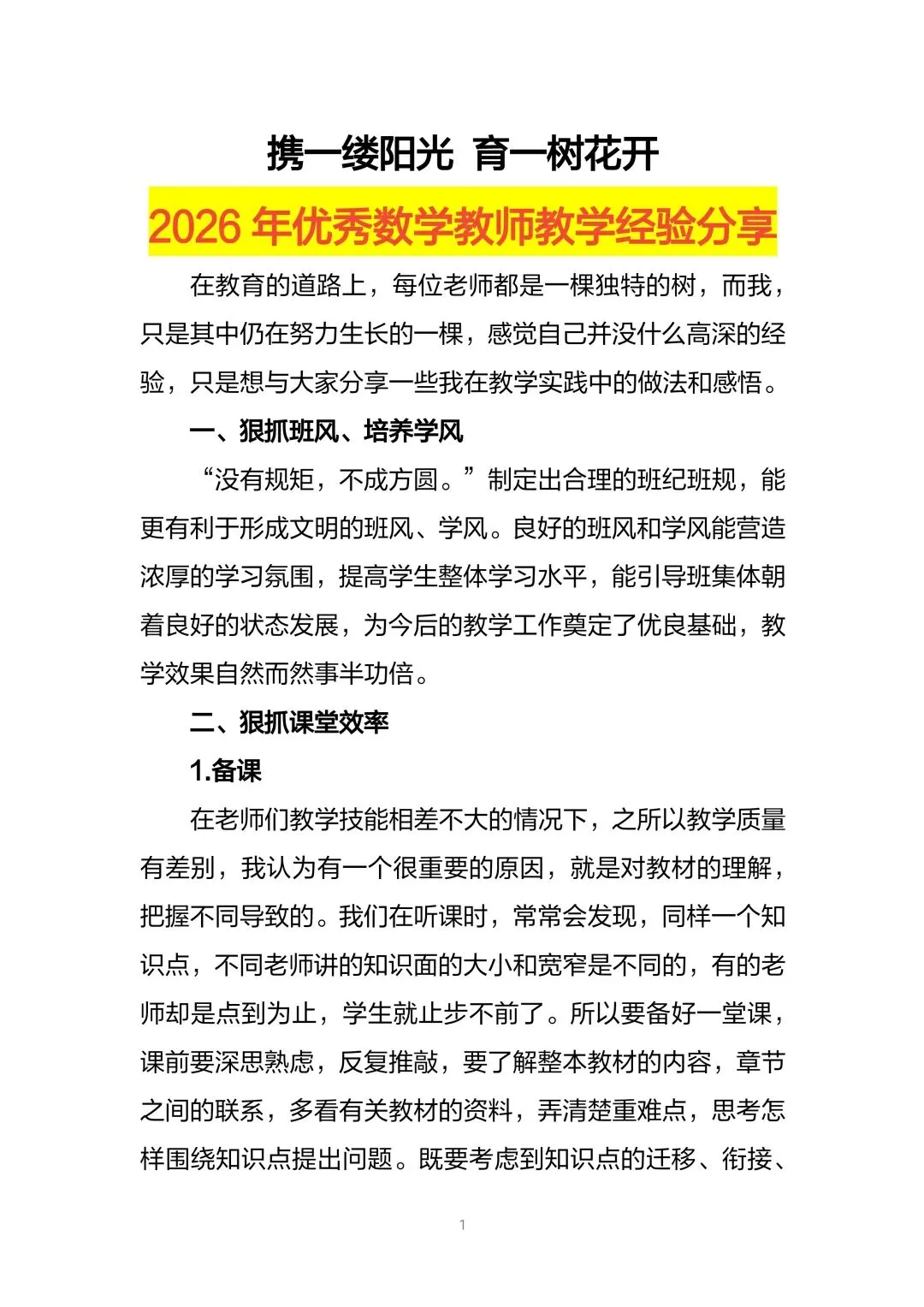 【经验分享】【数学】教师教学经验分享PPT+逐字稿:携一缕阳光,育一树花开