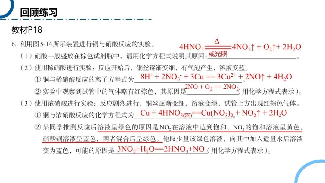 课前回顾练习,掌握氮及其化合物相关的反应。