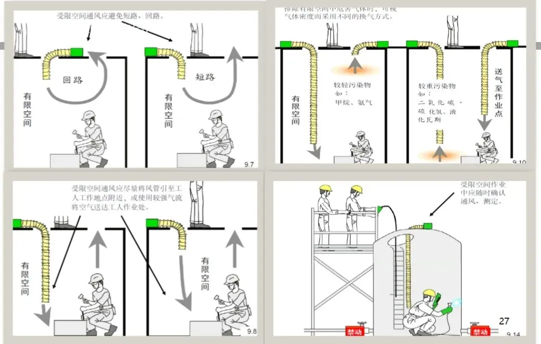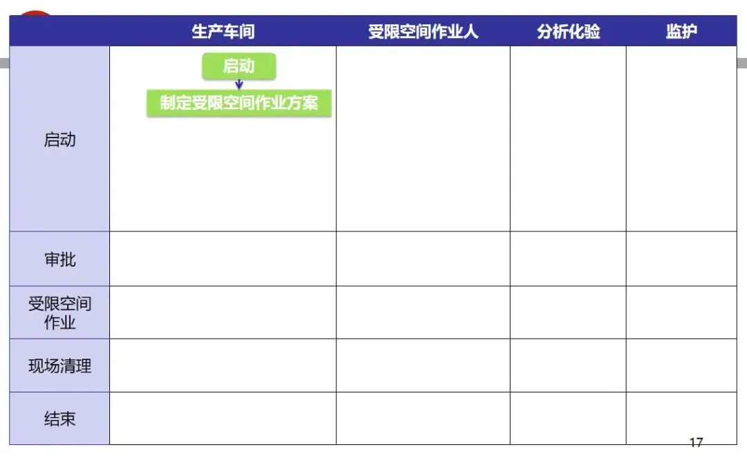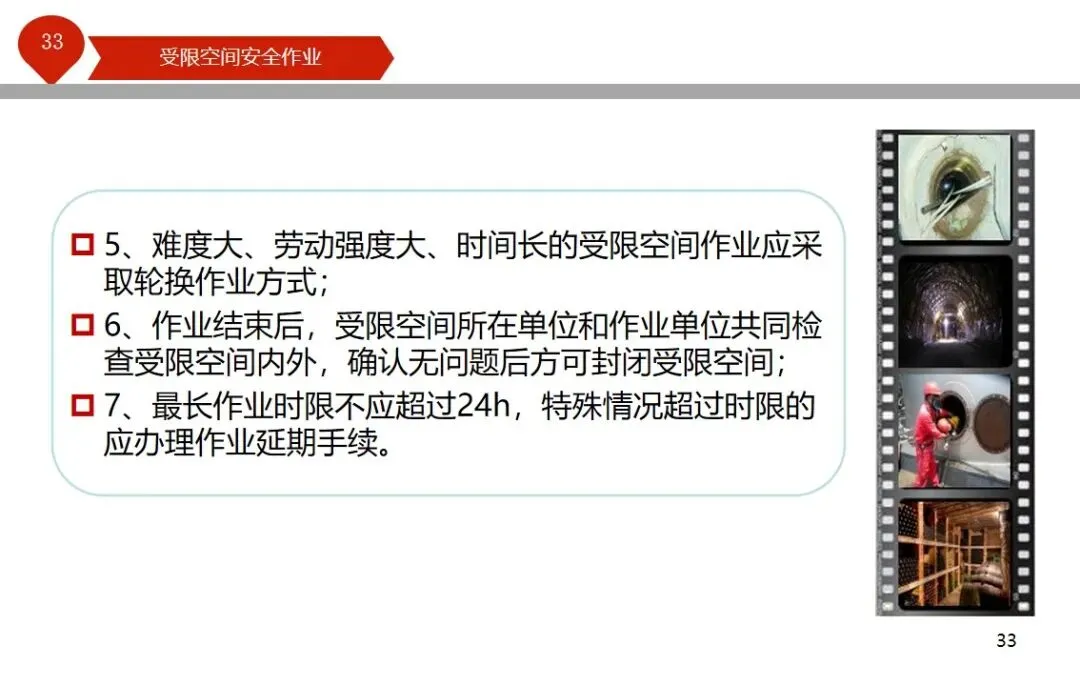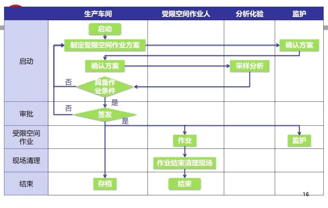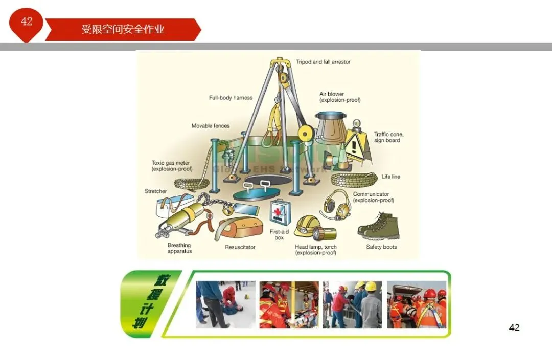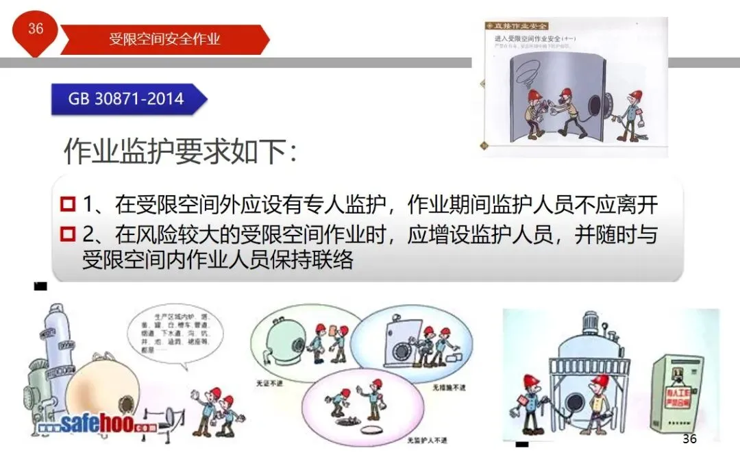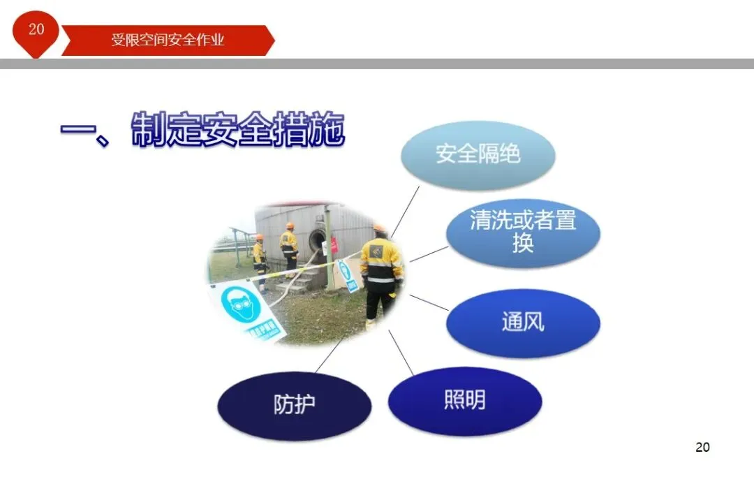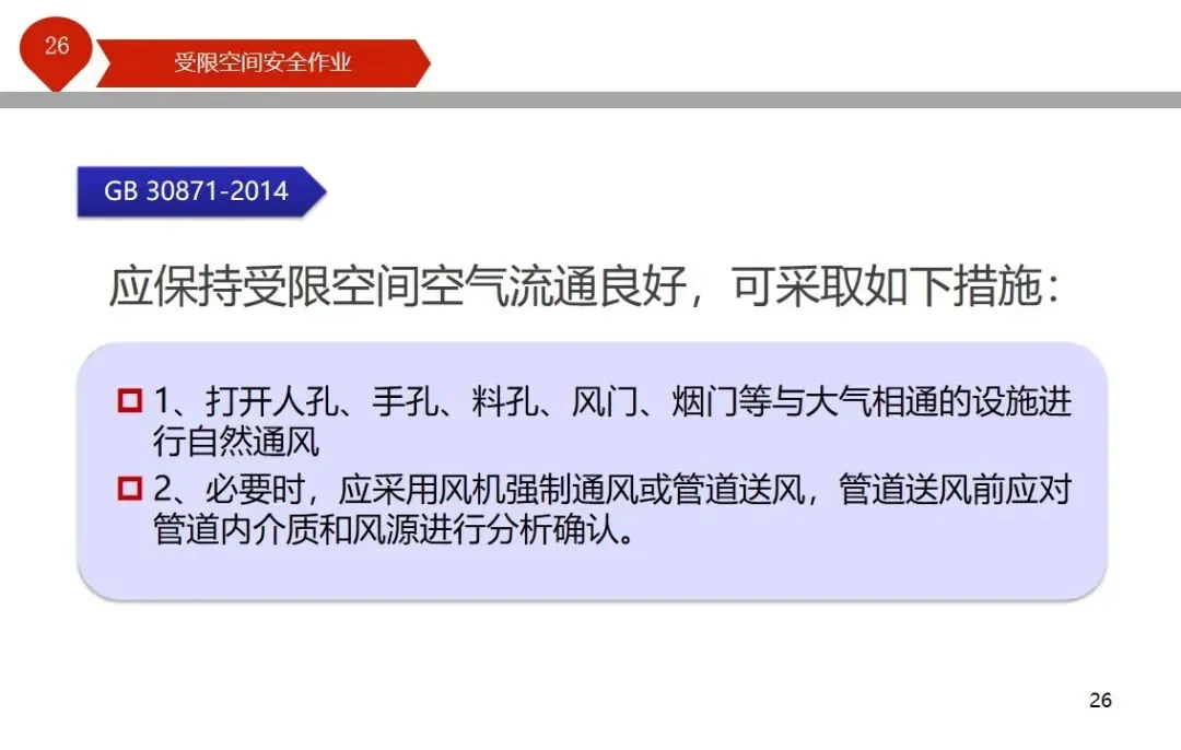 报告结合多起典型案例强调风险防控要点。有限空间广泛存在于化工、冶金、污水处理等多个行业,作业环境复杂,通风不畅且易积聚有毒有害气体,存在中毒、窒息、燃爆等多重风险,盲目施救易导致风险扩大。培训明确作业核心流程,需先履行审批手续,制定包含安全隔绝、清洗置换、通风照明等措施的作业方案。作业前 30 分钟内须完成气体检测,氧含量需控制在 18%-21%,有毒有害与可燃气体浓度需符合国家标准。作业人员需按场景佩戴隔绝式呼吸器等防护用品,受限空间外必须配备专职监护人员,保持实时联络。PPT 着重强调应急保障要求,需配备通讯、检测、救援等装备,制定科学施救预案并开展演练。作业全程需严格遵循 GB 30871-2014 标准,作业证有效期不超过 24 小时,变更作业内容需重新审批,确保全流程安全可控。