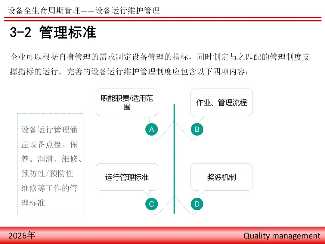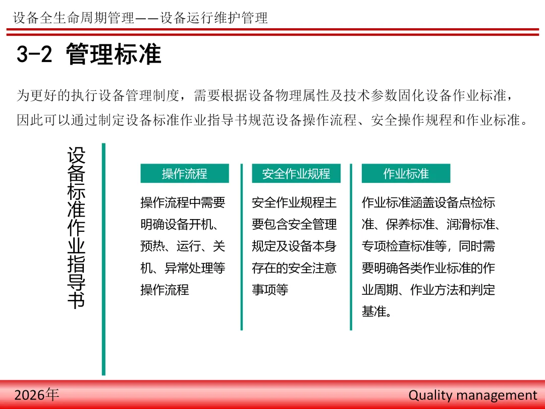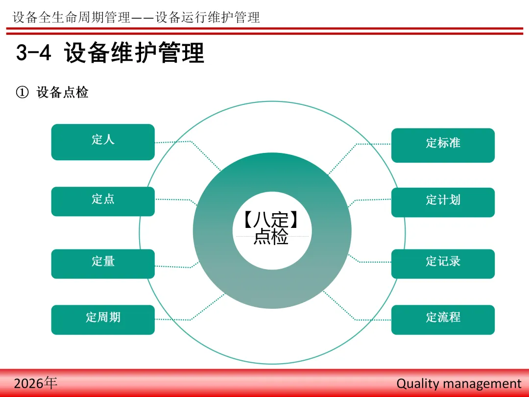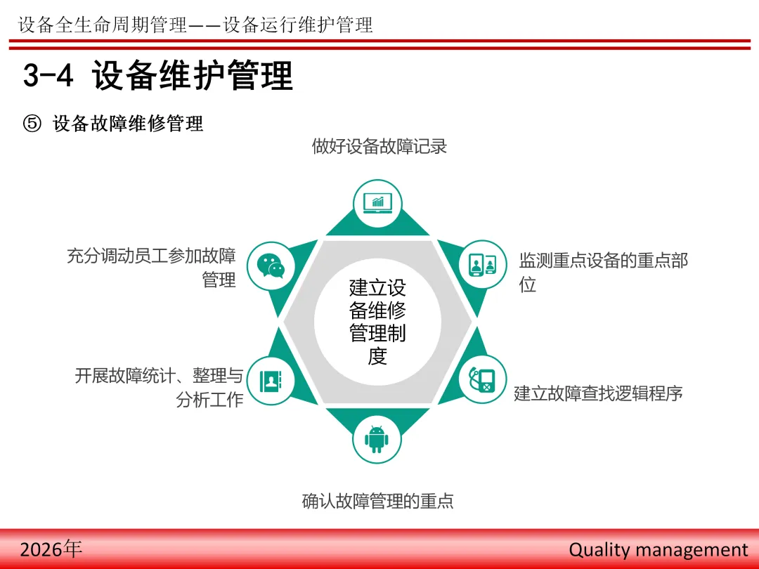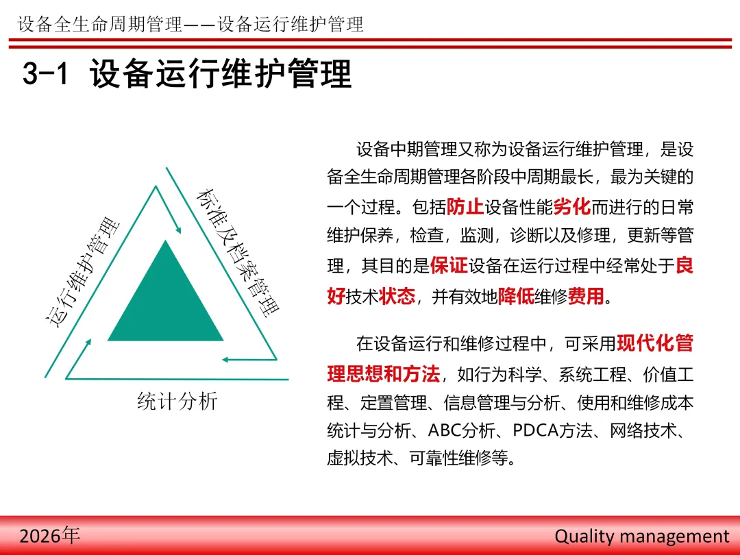 中期,要围绕台账、标准、运行、维护、备件、档案、能源和统计分析展开,让设备始终处于受控状态。