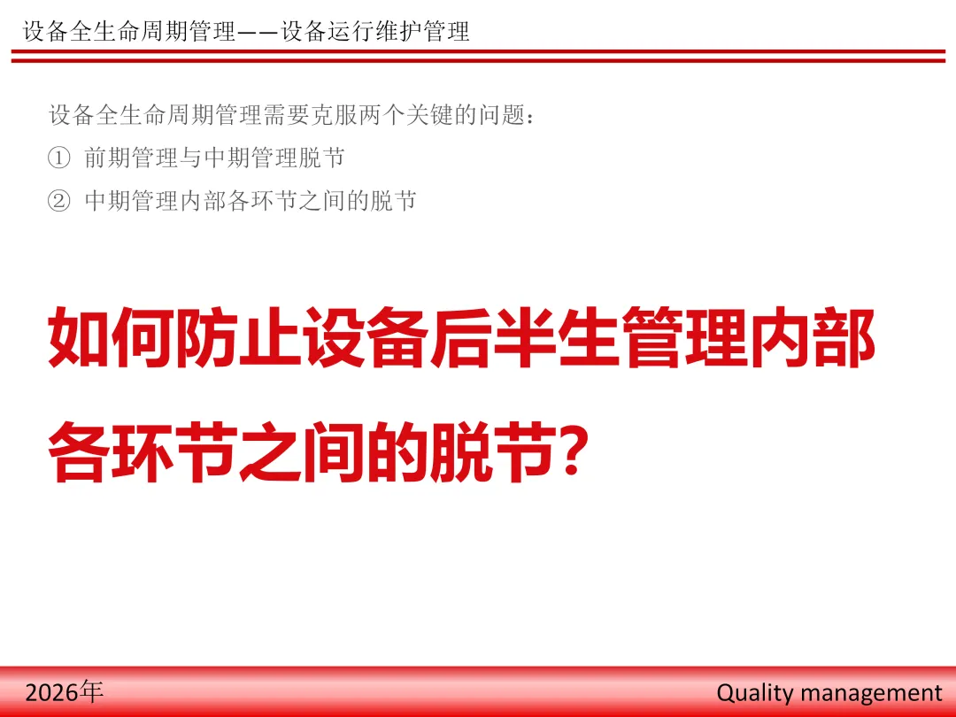 比如规划阶段没有做可行性分析,设计阶段没有考虑可靠性和可维修性,采购阶段只看价格不看后期成本,安装调试不扎实,验收流于形式。等设备正式投产后,故障频发、效率不稳、维修费用高,现场就只能不断救火。