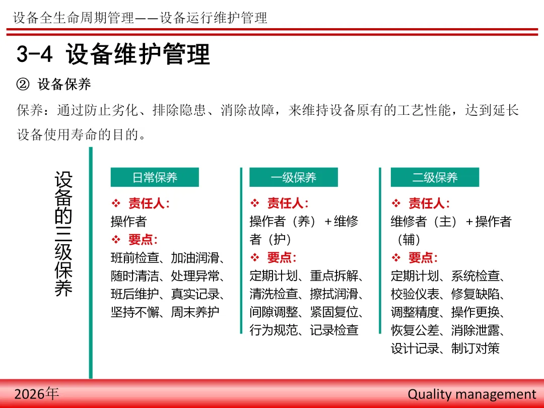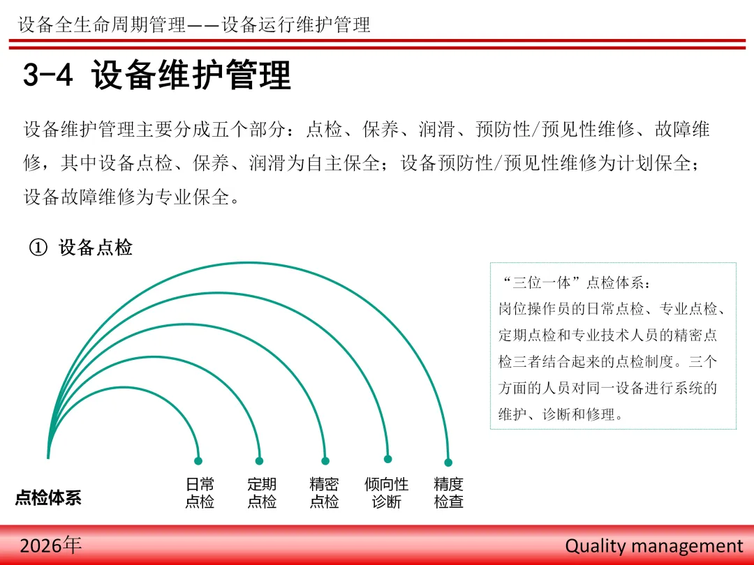 要有点检、有保养、有润滑、有预防性维修,也要有故障记录、数据分析和状态监控。