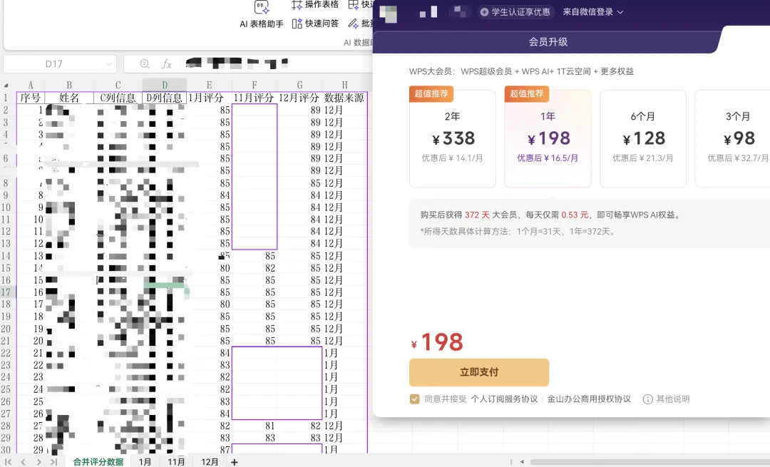 接到工作任务,要合并3个EXCEL中的人员考评分数,每个EXCEL包含2个sheet。每个EXCEL中的人员不完全一样,最终要生成2个汇总的sheet,包含所有人3个月的考评分数。在AI爆发的时代,必须用AI尝试一键生成。本人代码小白,看到运行、{、cmd、Python等等大脑就停顿,更何况鸿蒙电脑,哪里运行CD都不知道.....