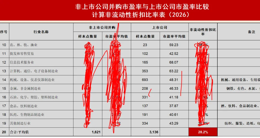 估值参数:非流动性折扣比率