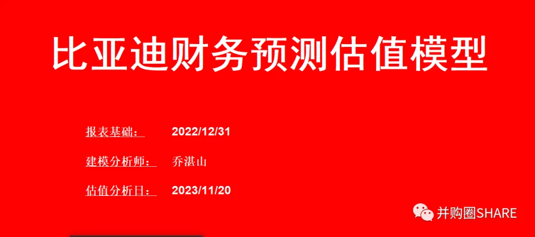 比亚迪财务预测估值模型