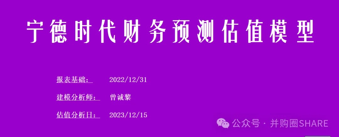 宁德时代财务预测估值模型