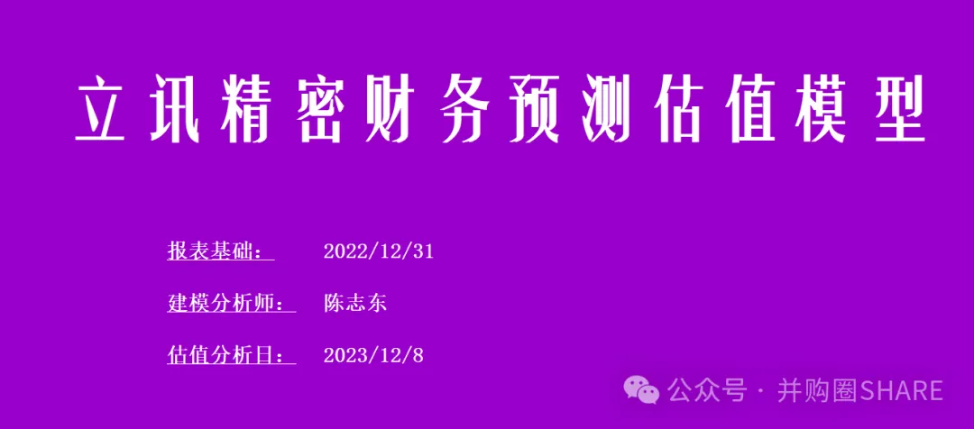 立讯精密财务预测估值模型