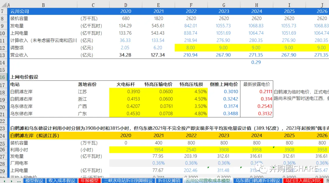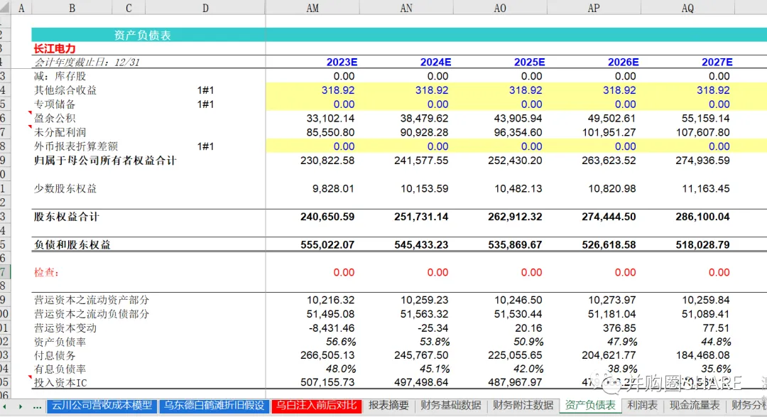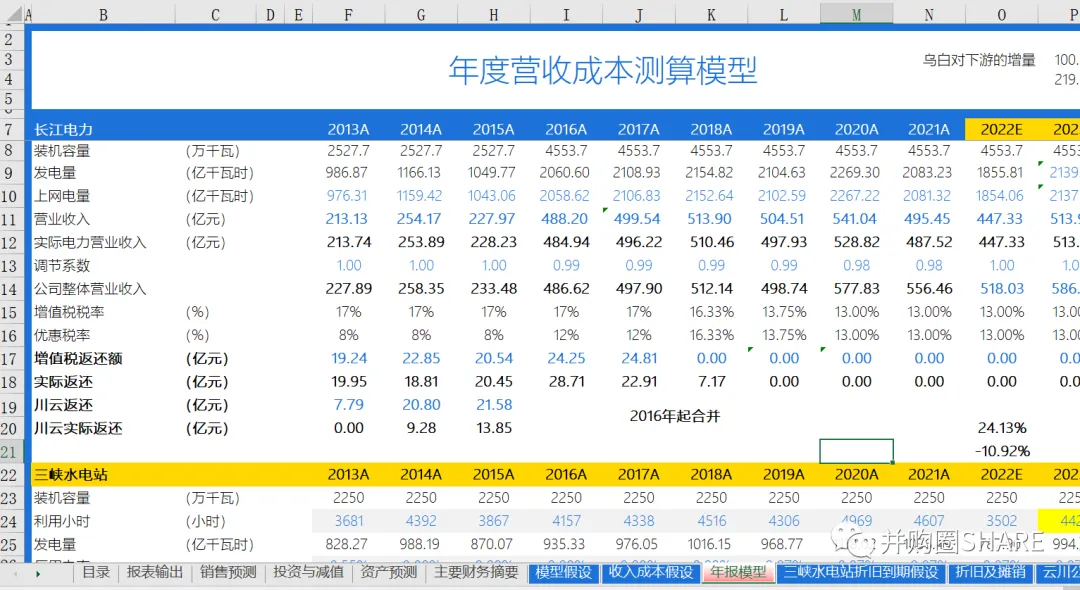 长江电力财务预测估值模型