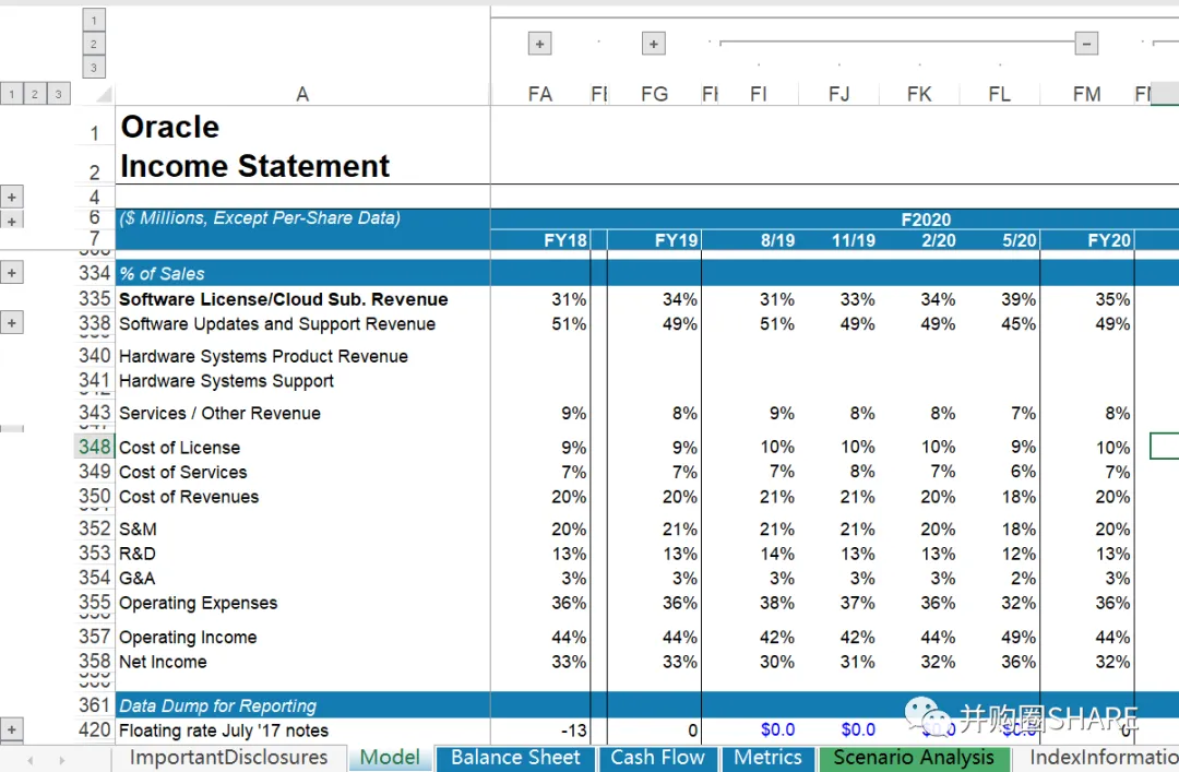 甲骨文财务预测估值模型