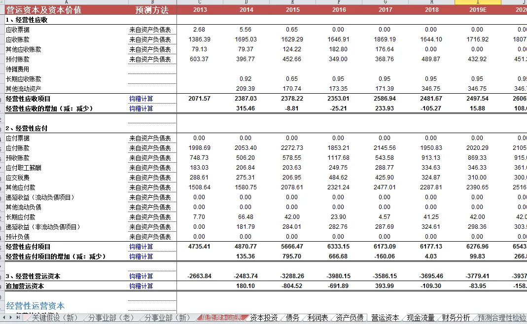 华能国际财务预测估值模型