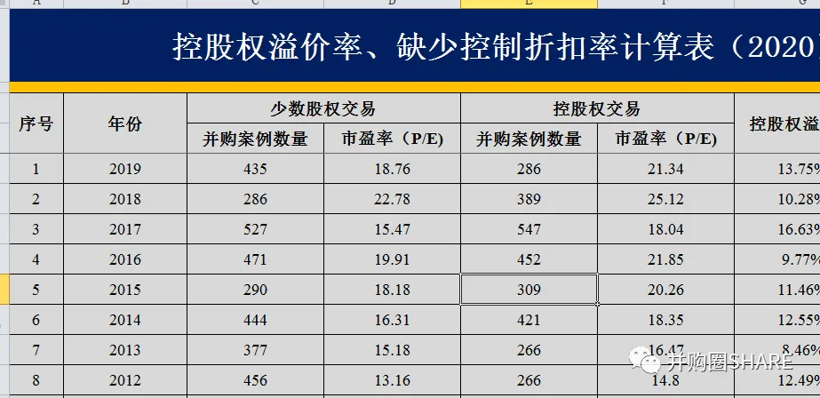 更多估值资料,尽在并购圈估值数据库