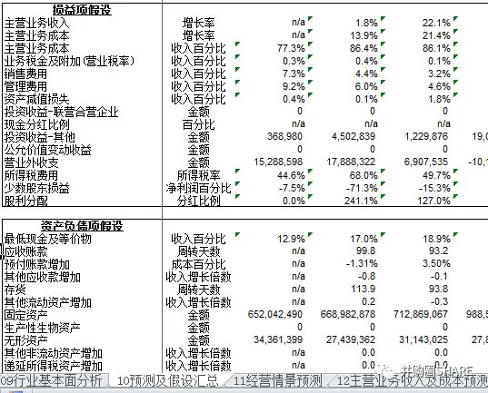 金龙鱼财务预测估值模型